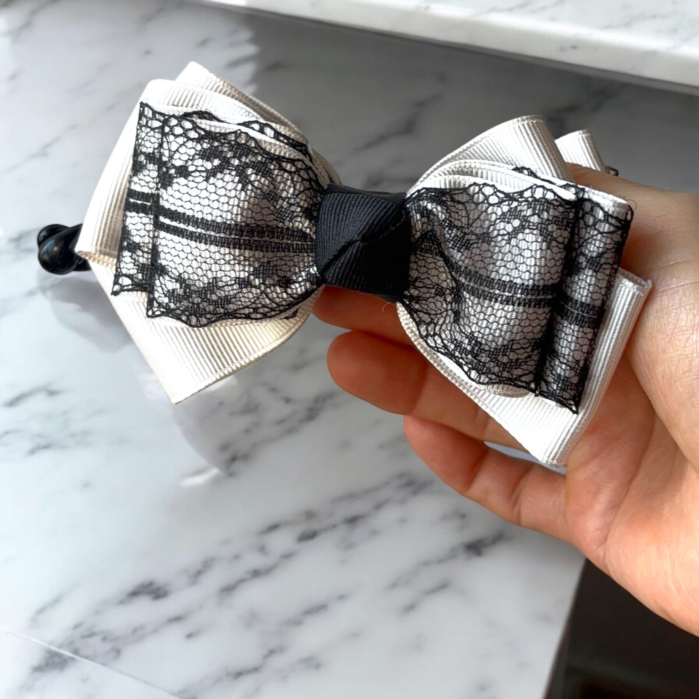 アンティークホワイト× ブラックレースリボン バナナクリップ
