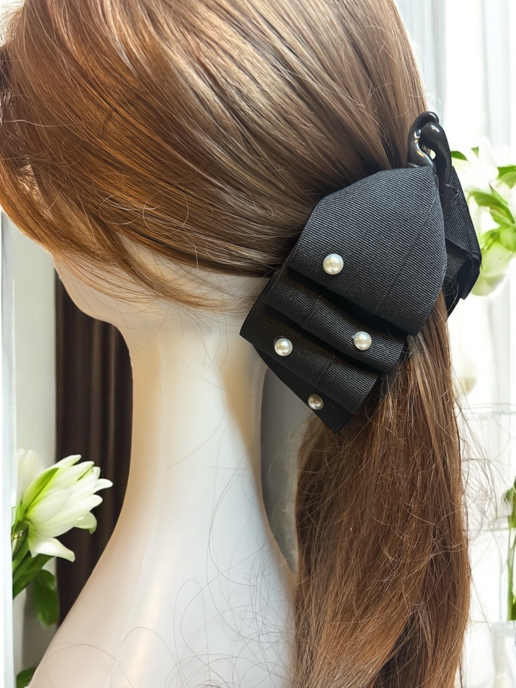 ■上品で可愛らしい Lily bell アレンジデザイン バナナクリップ ブラック × パール