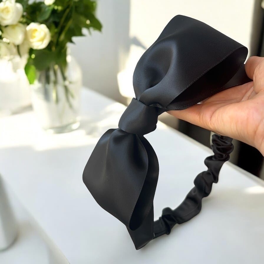 ツヤツヤでしっかりとした生地感のサテンリボンを使用したヘアバンド。
