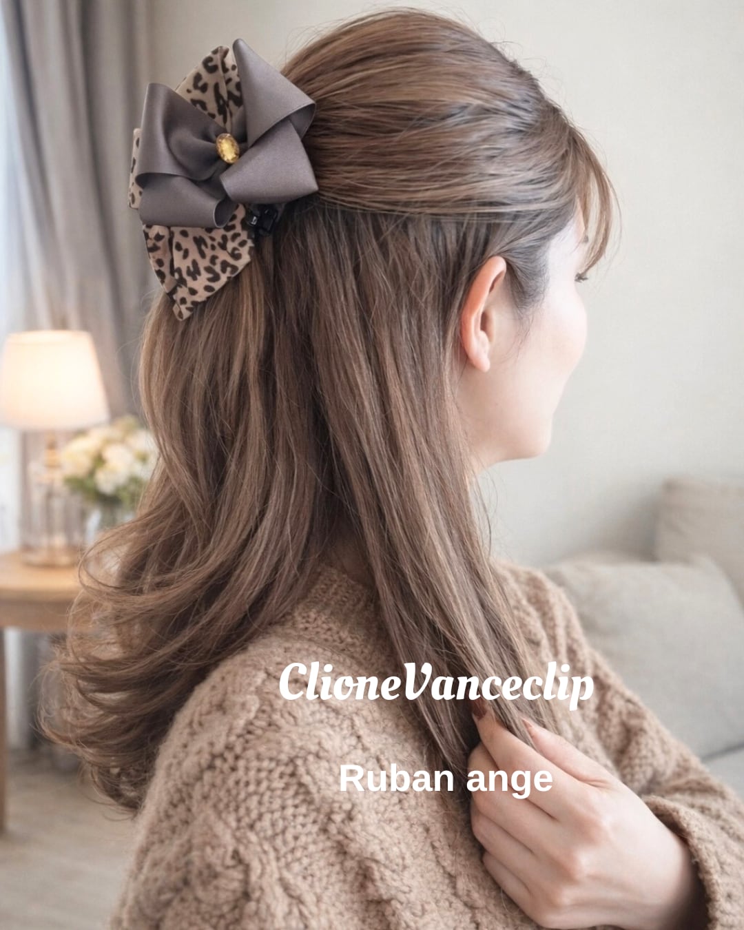 ビジュー増えました ClioneVanceclip クリオネバンスクリップ ブラウン×レオパード柄 簡単に華やか