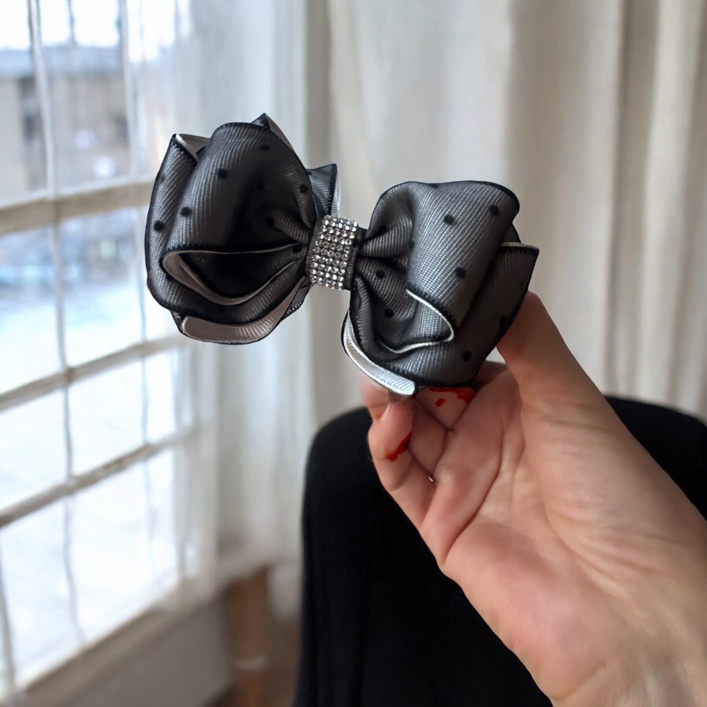 クロスリボンバナナクリップ ドットレース キラキラセンター
