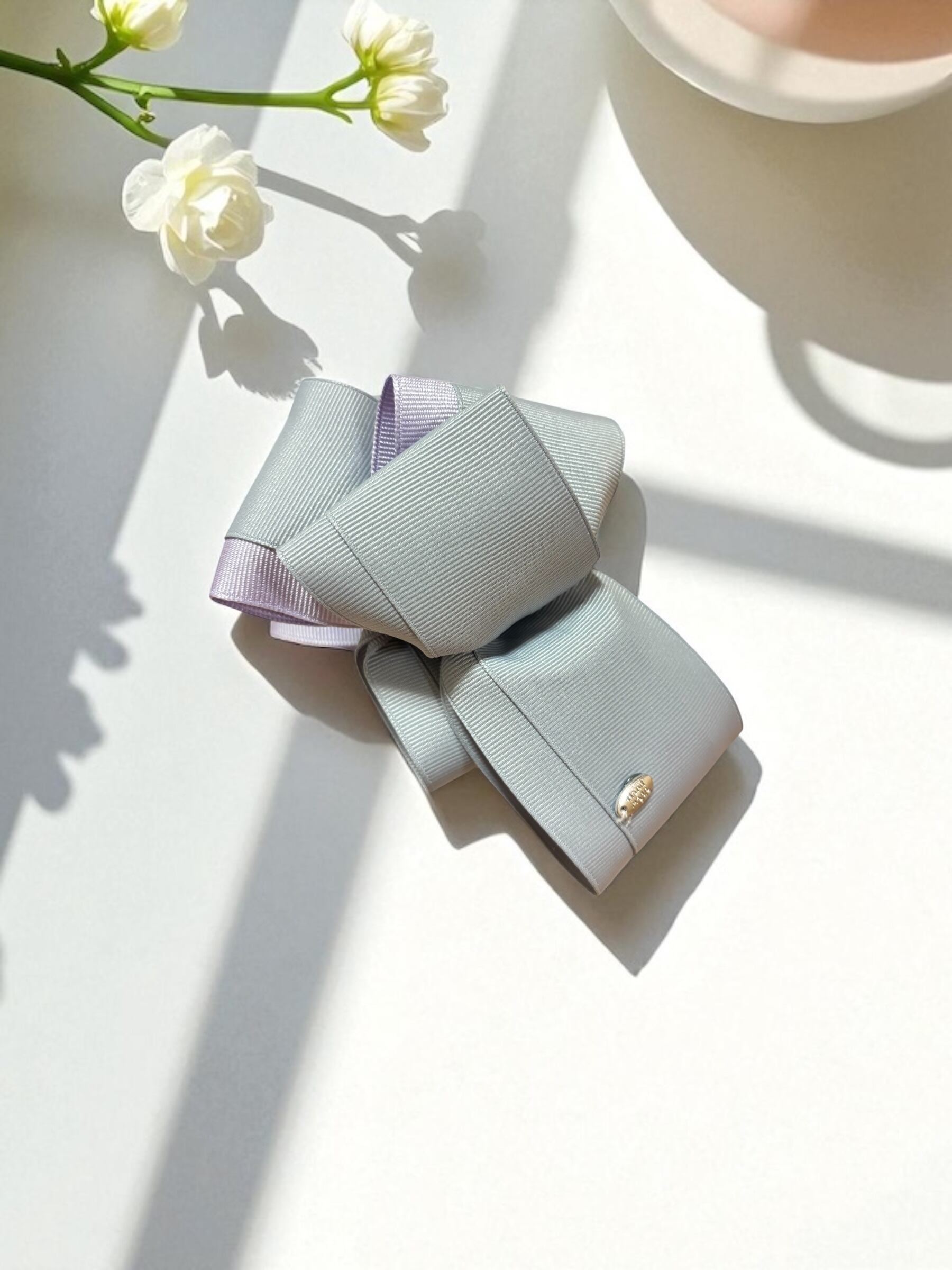 ■トレリボン バナナクリップ ライトグレー×ライトパープル