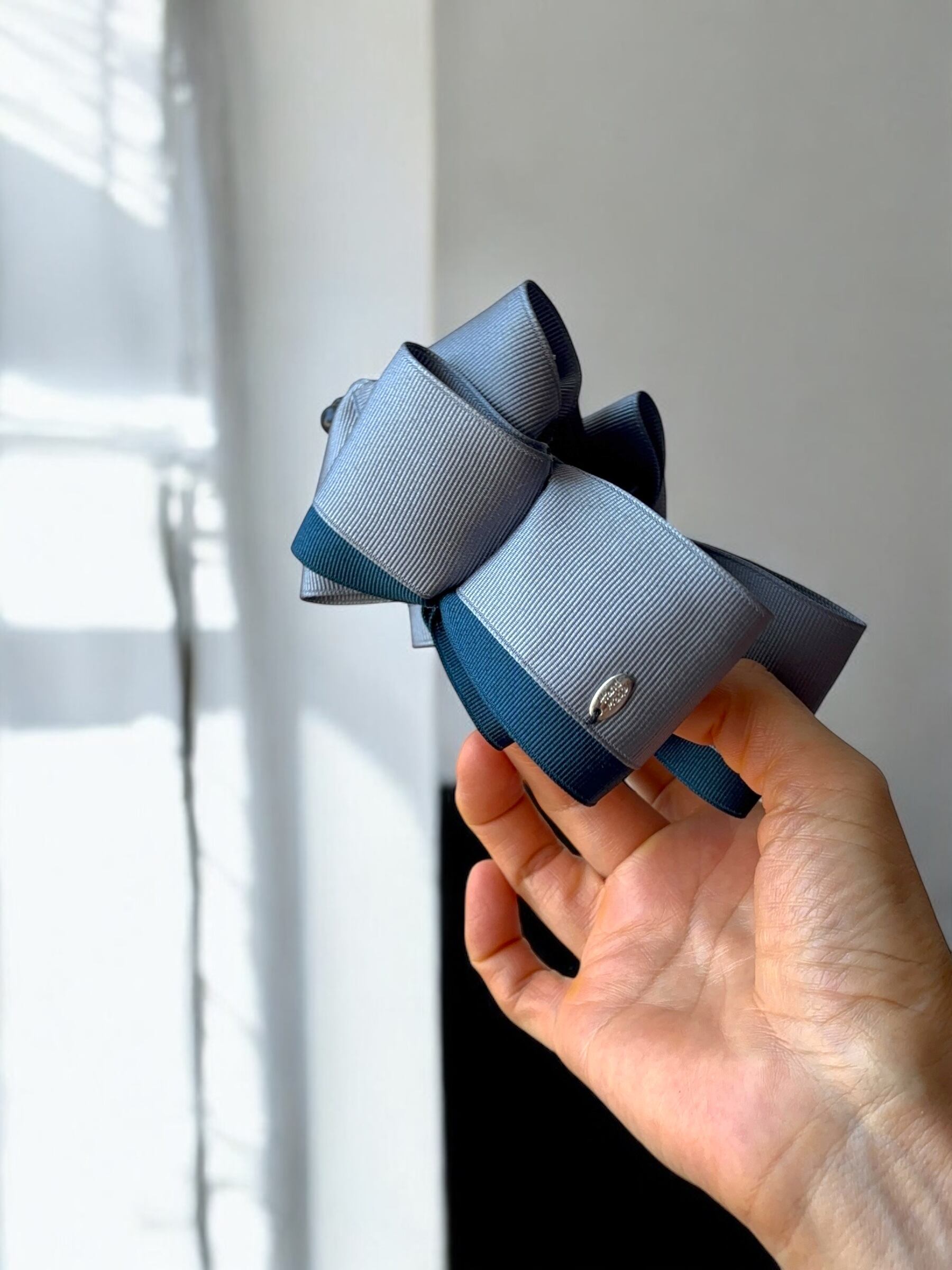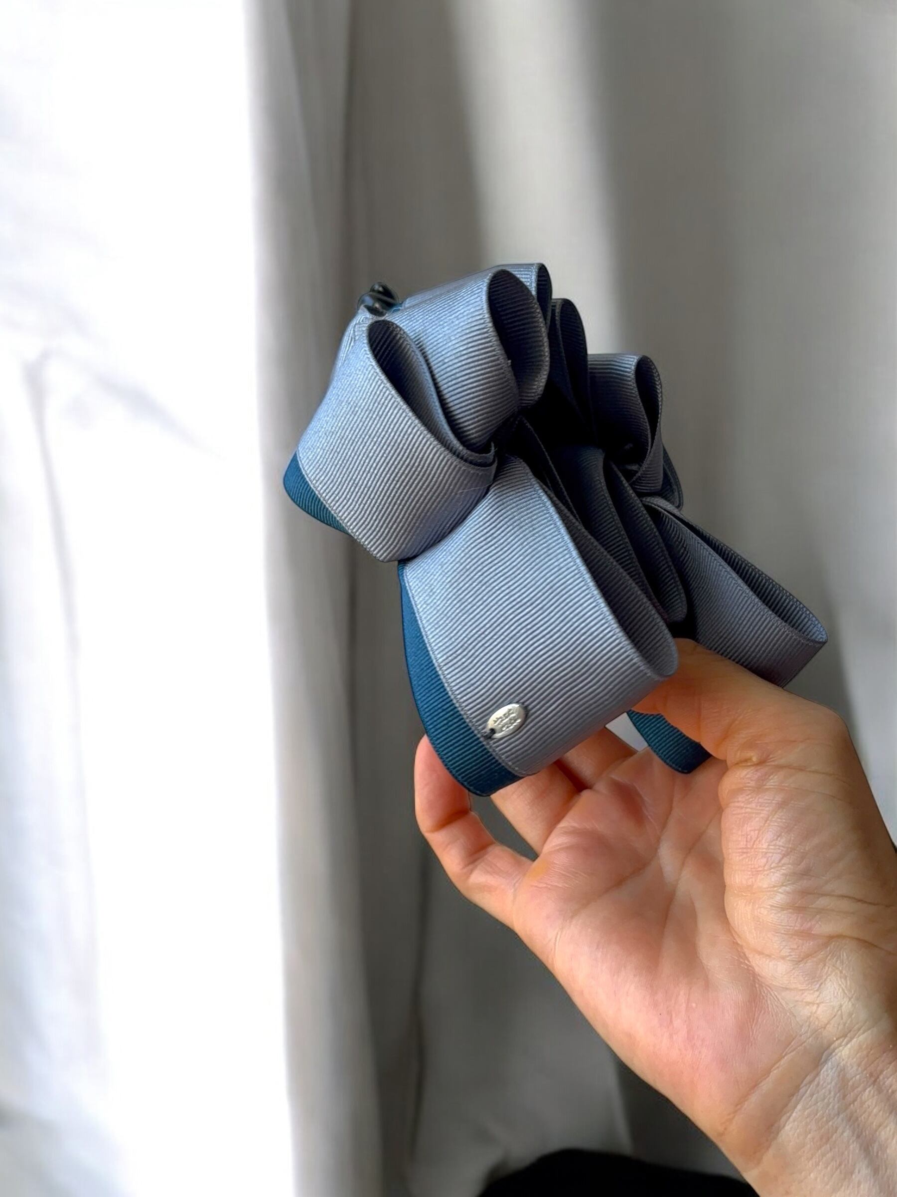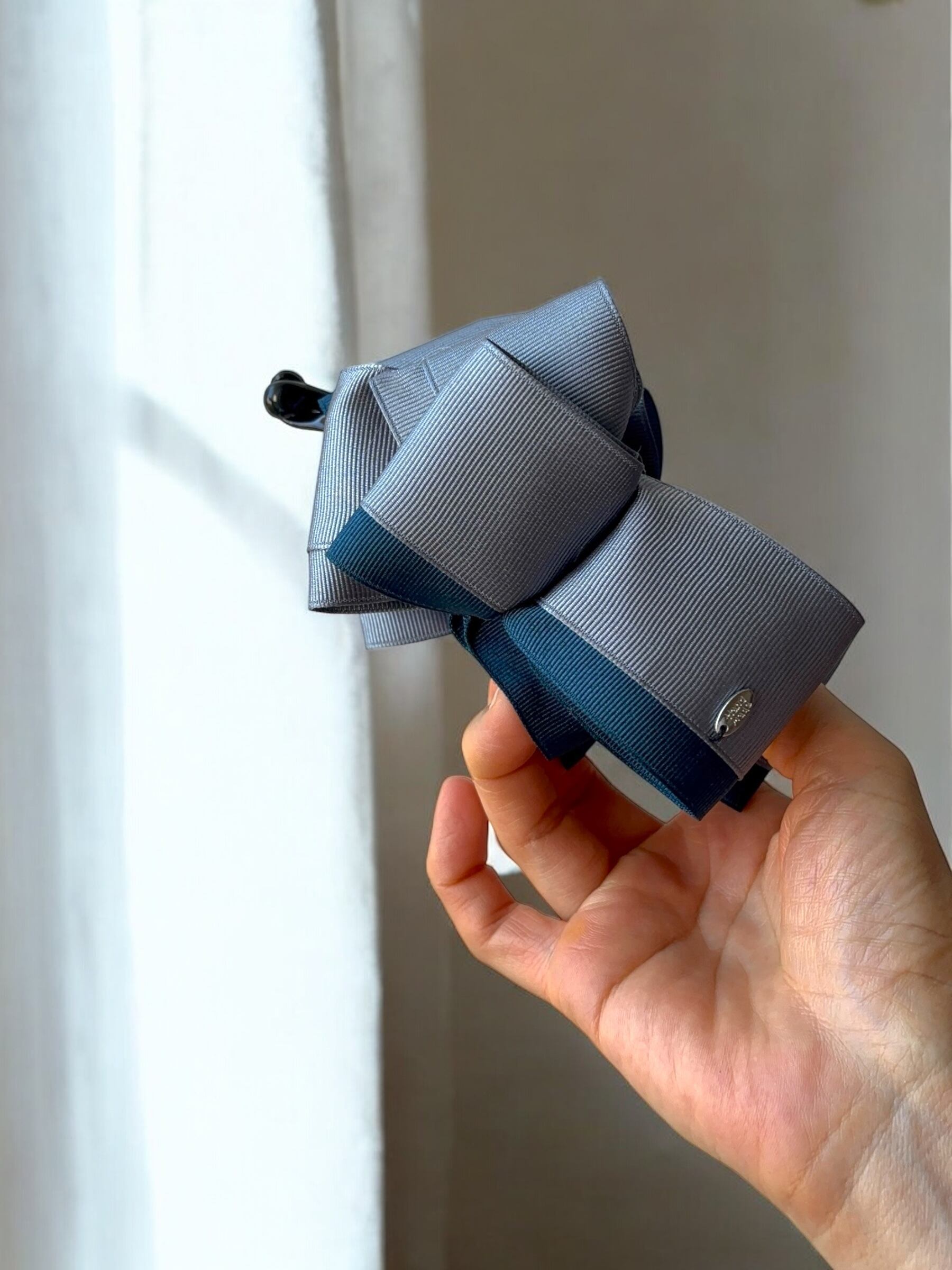 ■トレリボンバナナクリップ ダークグレー×ライトネイビー