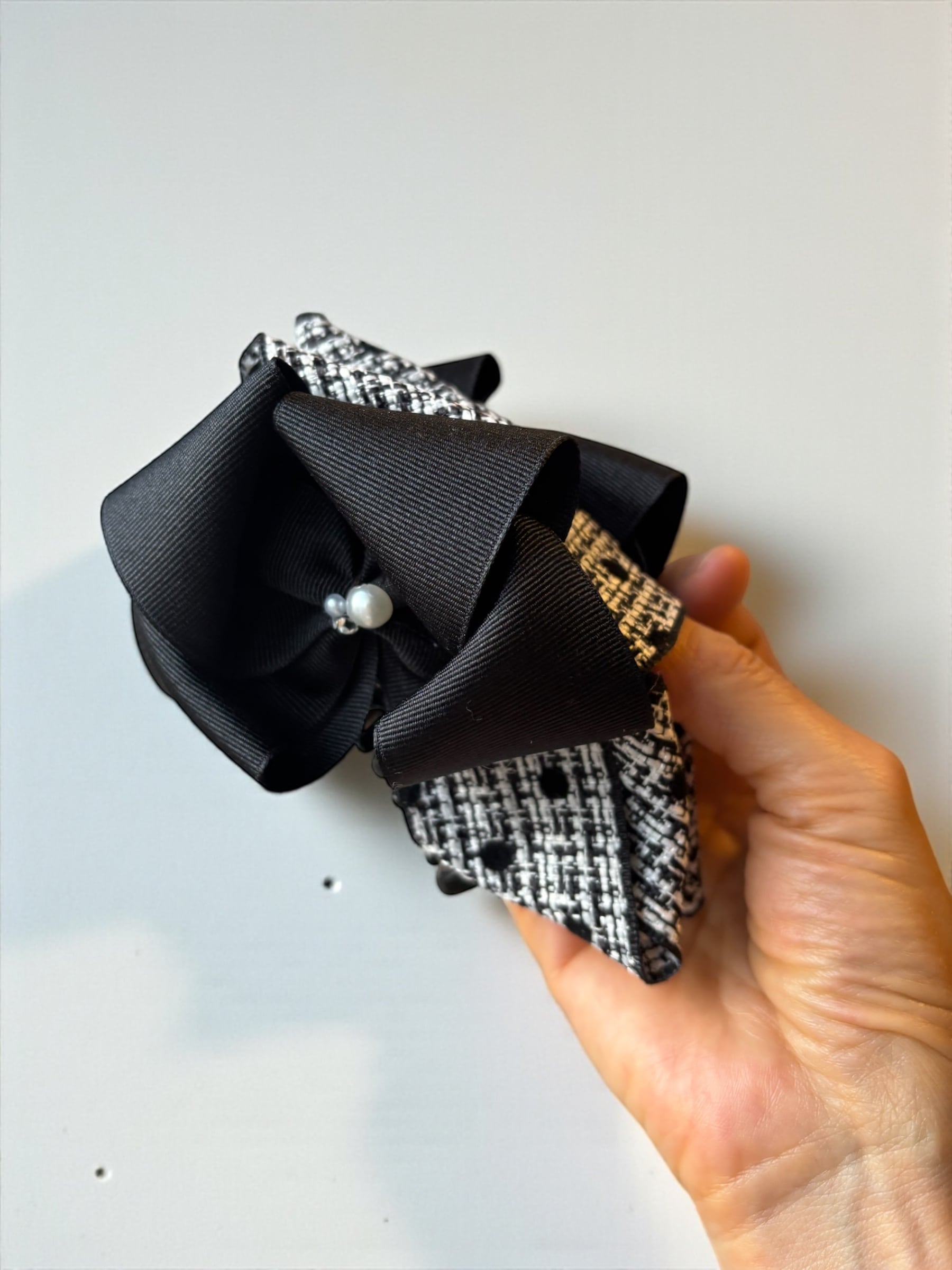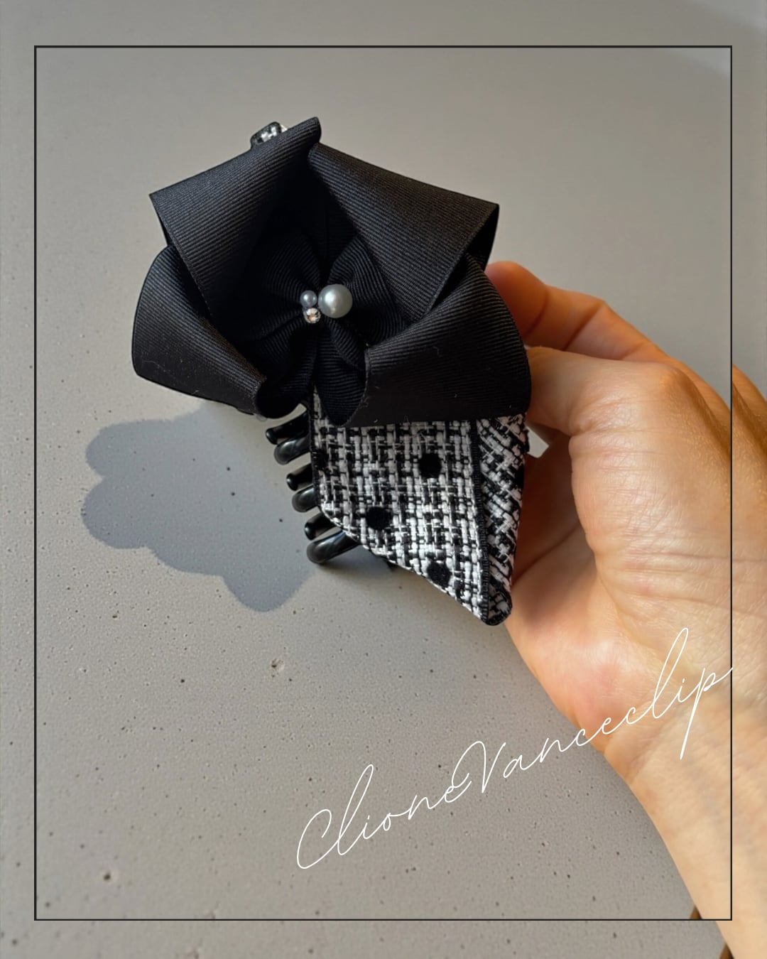 ClioneVanceclip ドットツイードリボン× ブラック バンスクリップ