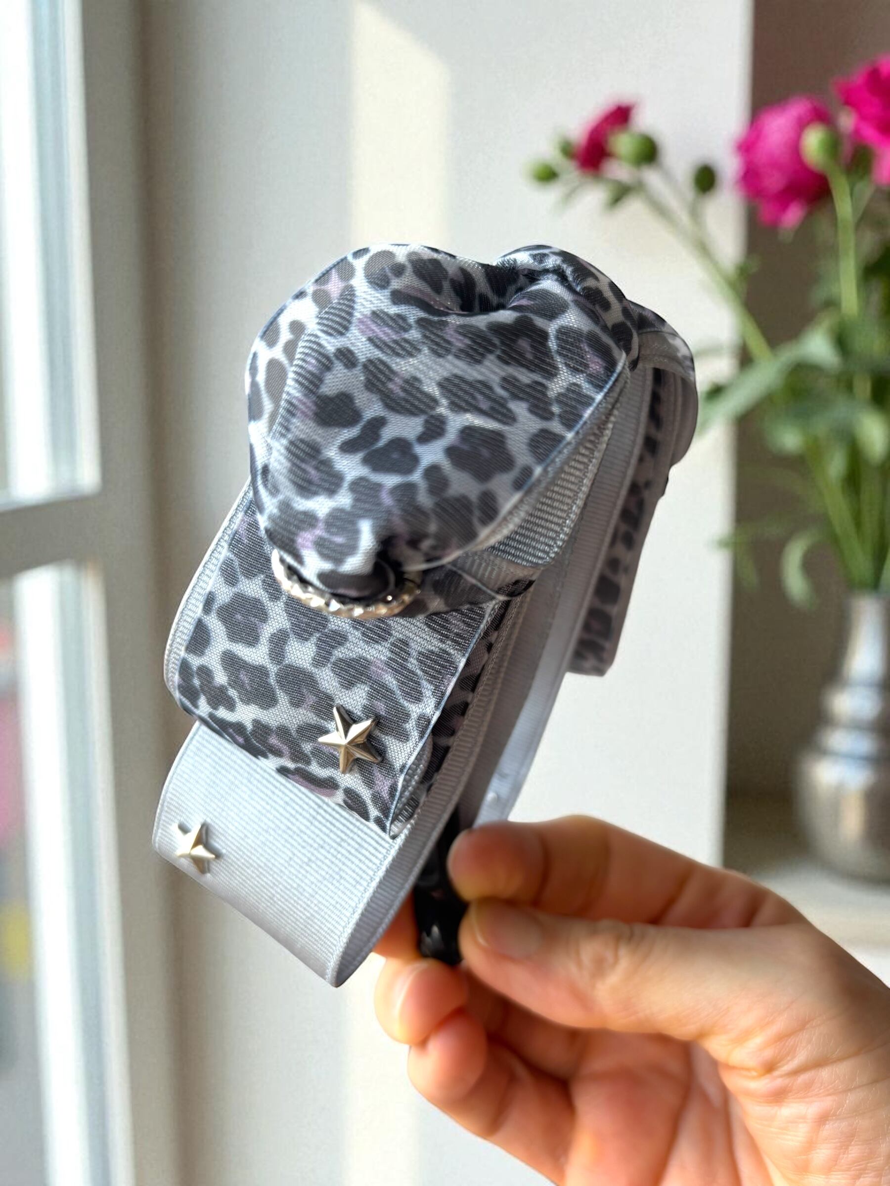 ■nana-R バナナクリップ ライトグレー× レオパード柄オーガンジー