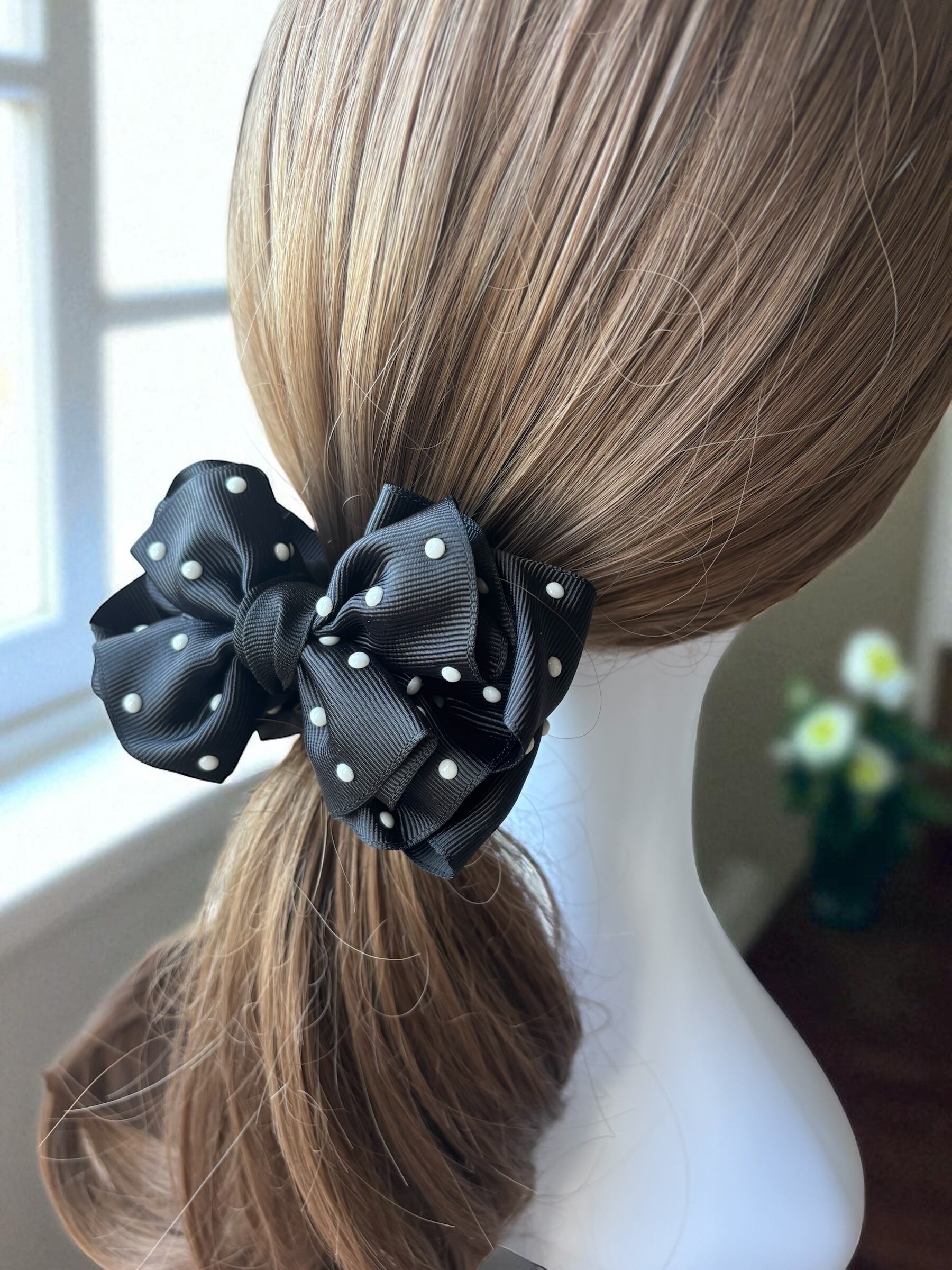 ボリュームたっぷり ブラックドット シエナ シュシュ