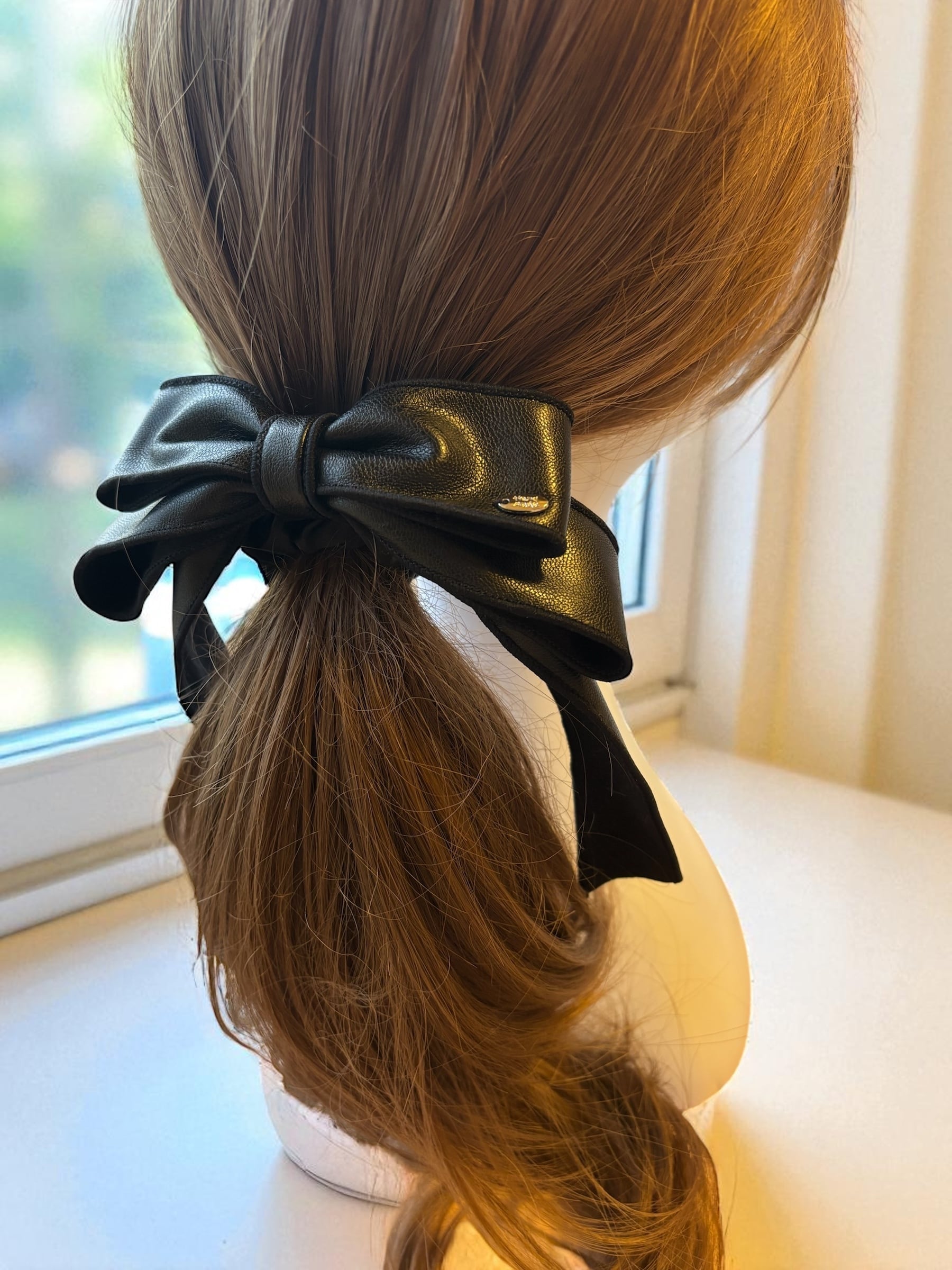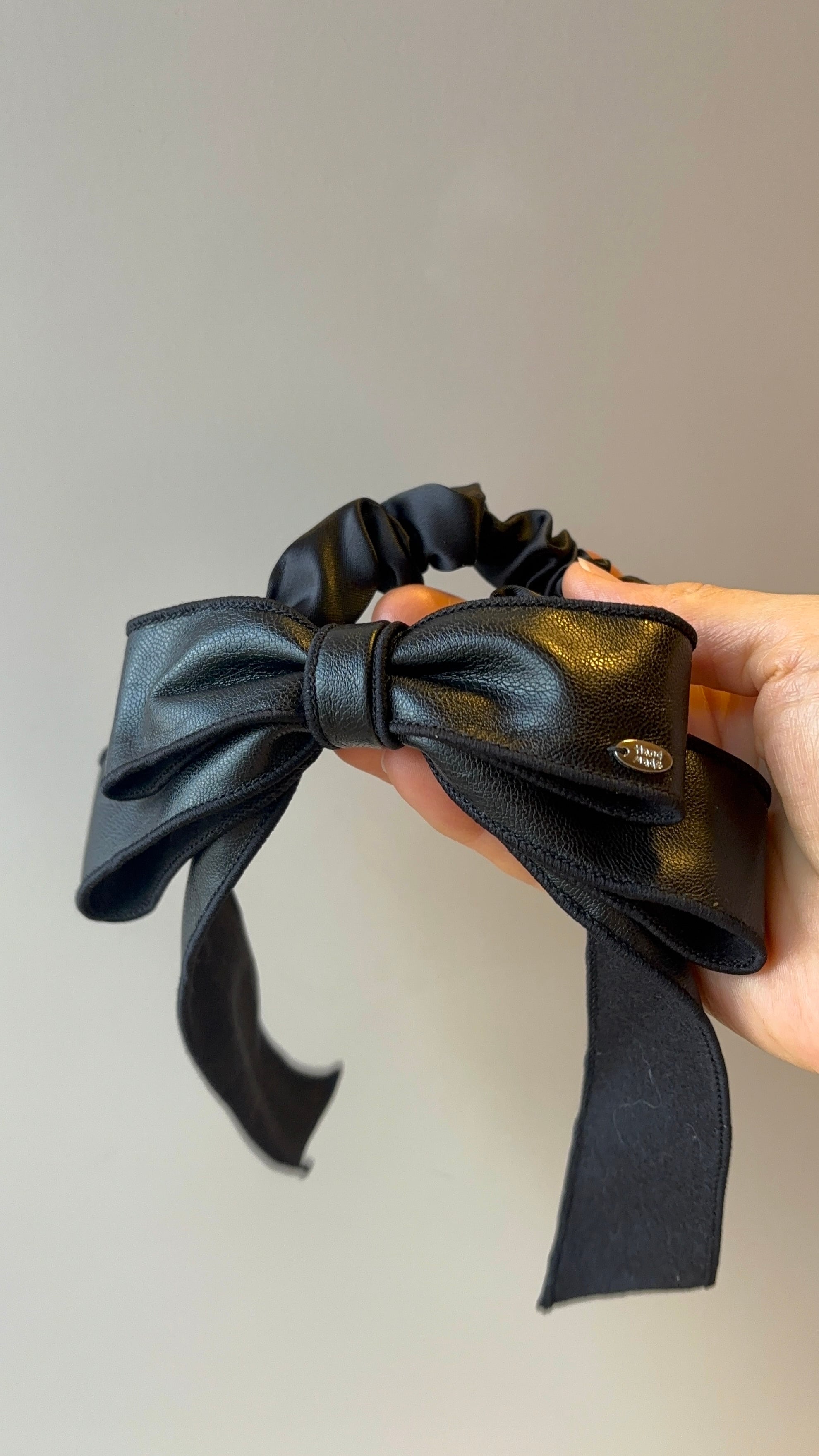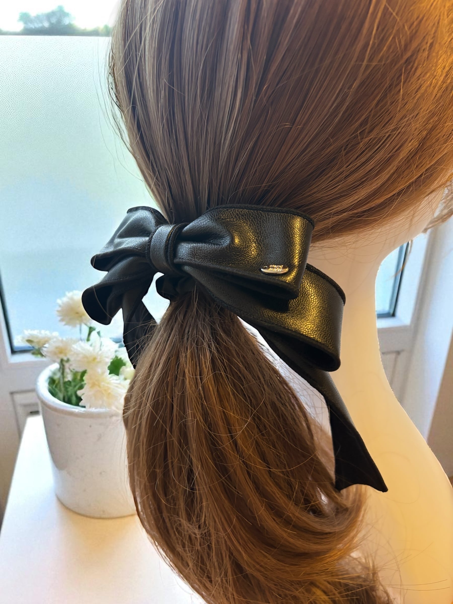 ■フェイクレザー 足つきリボンシュシュ