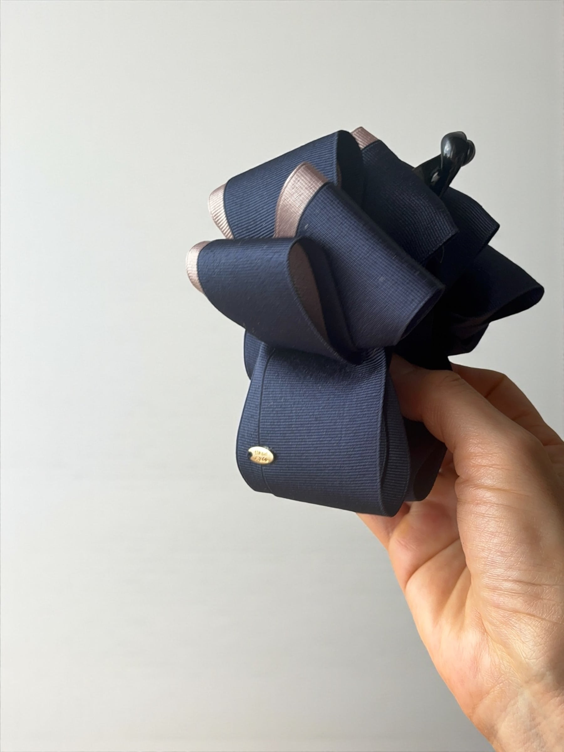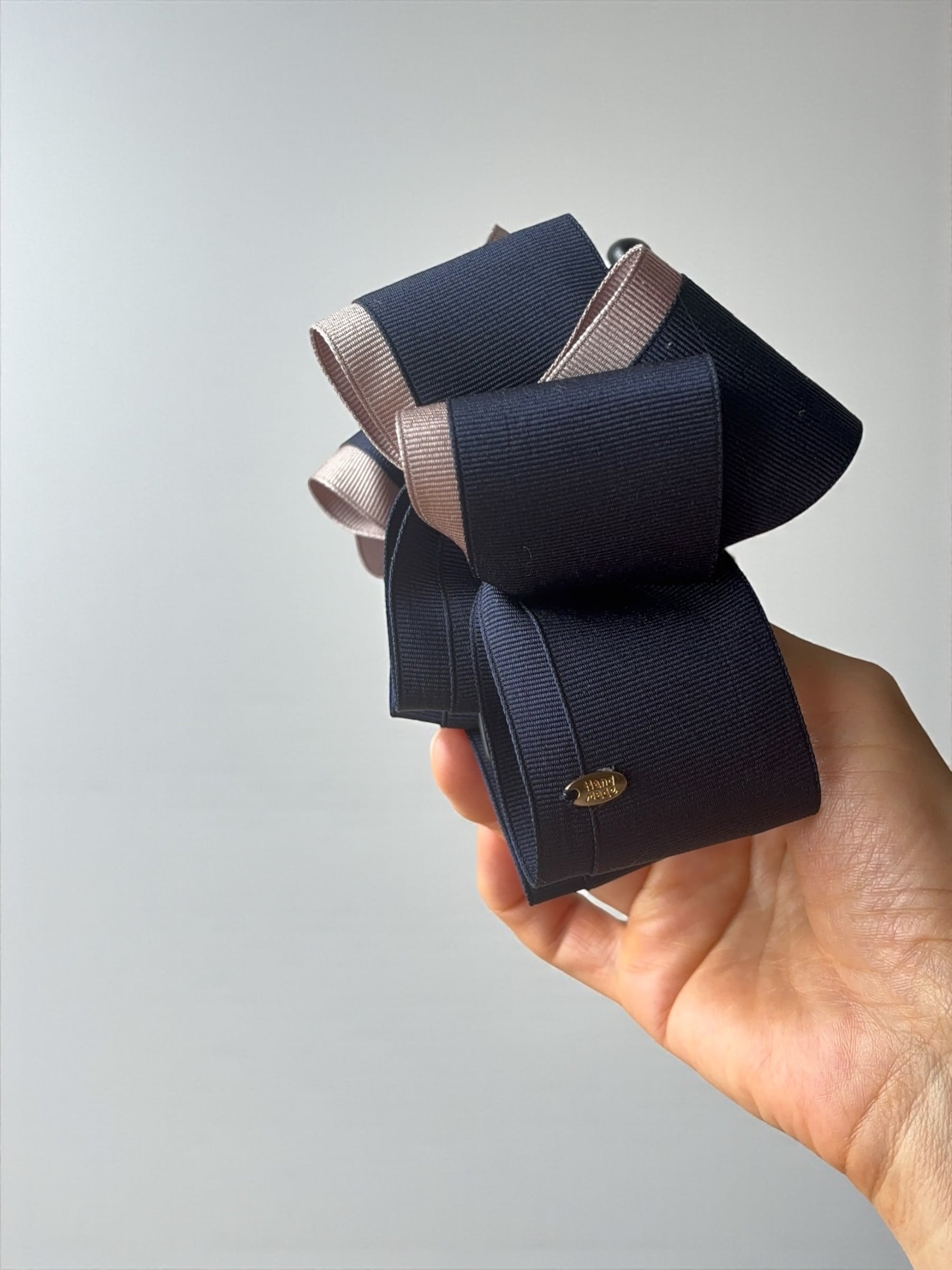 ■トレリボン バナナクリップ ネイビー×ライトベージュ