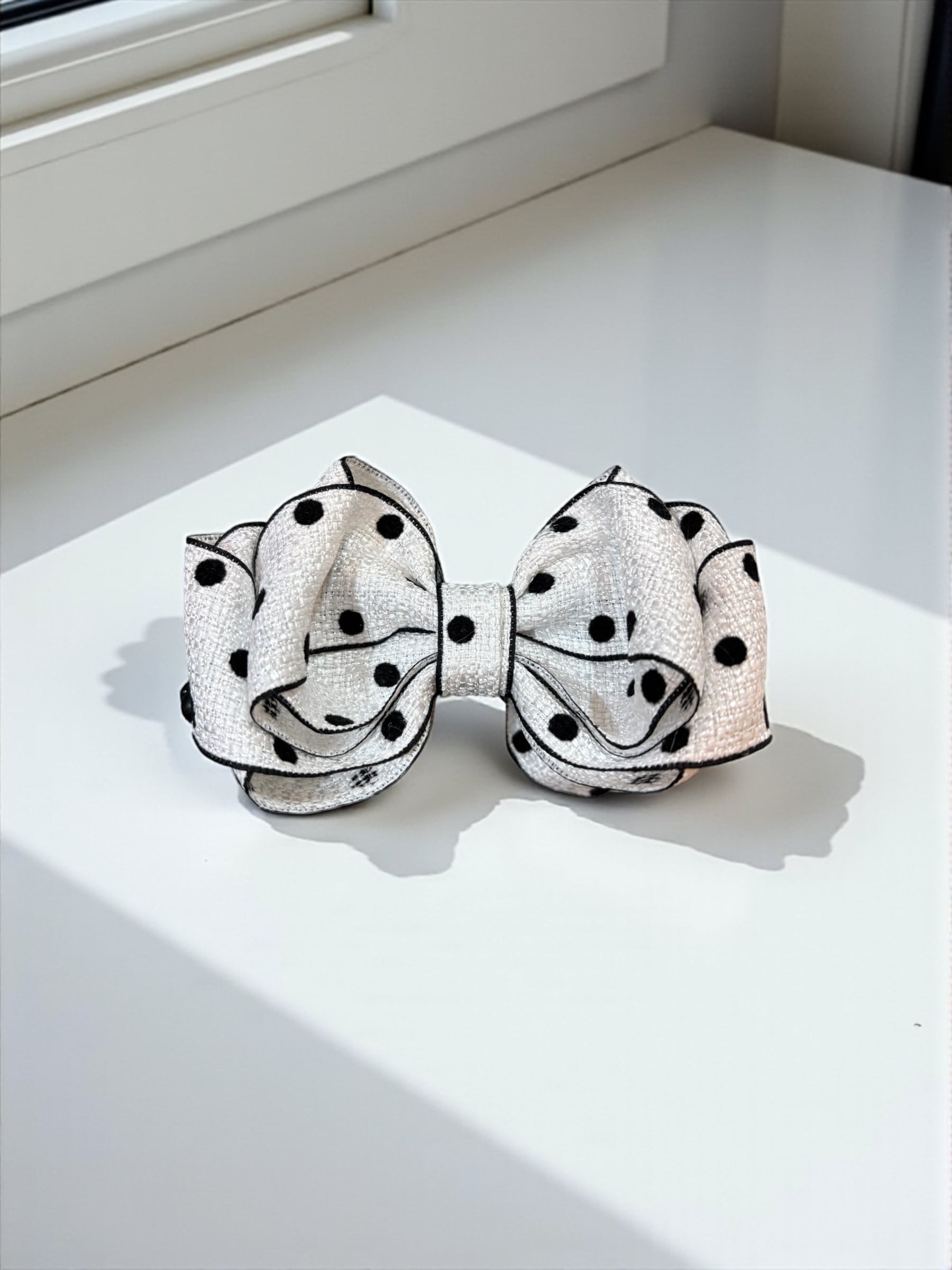 ホワイトドットツイードクロスリボン バナナクリップ