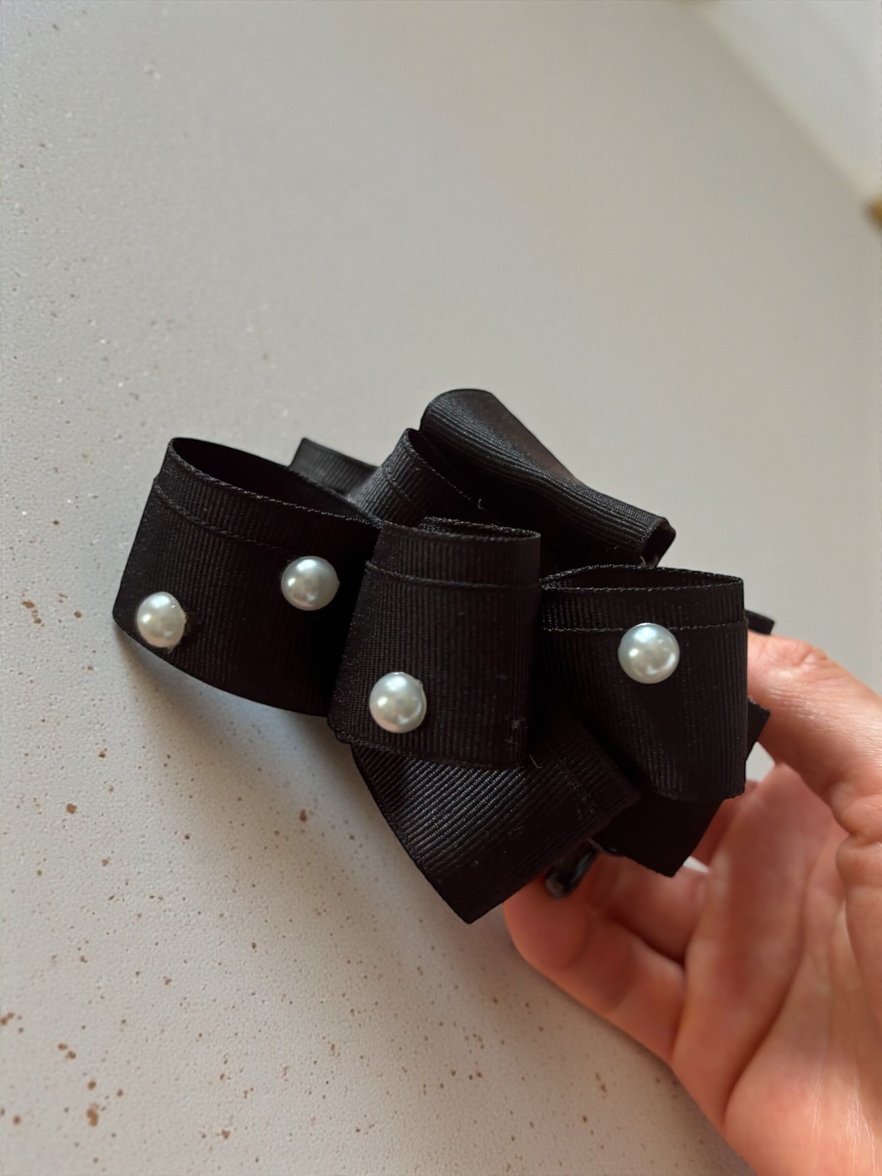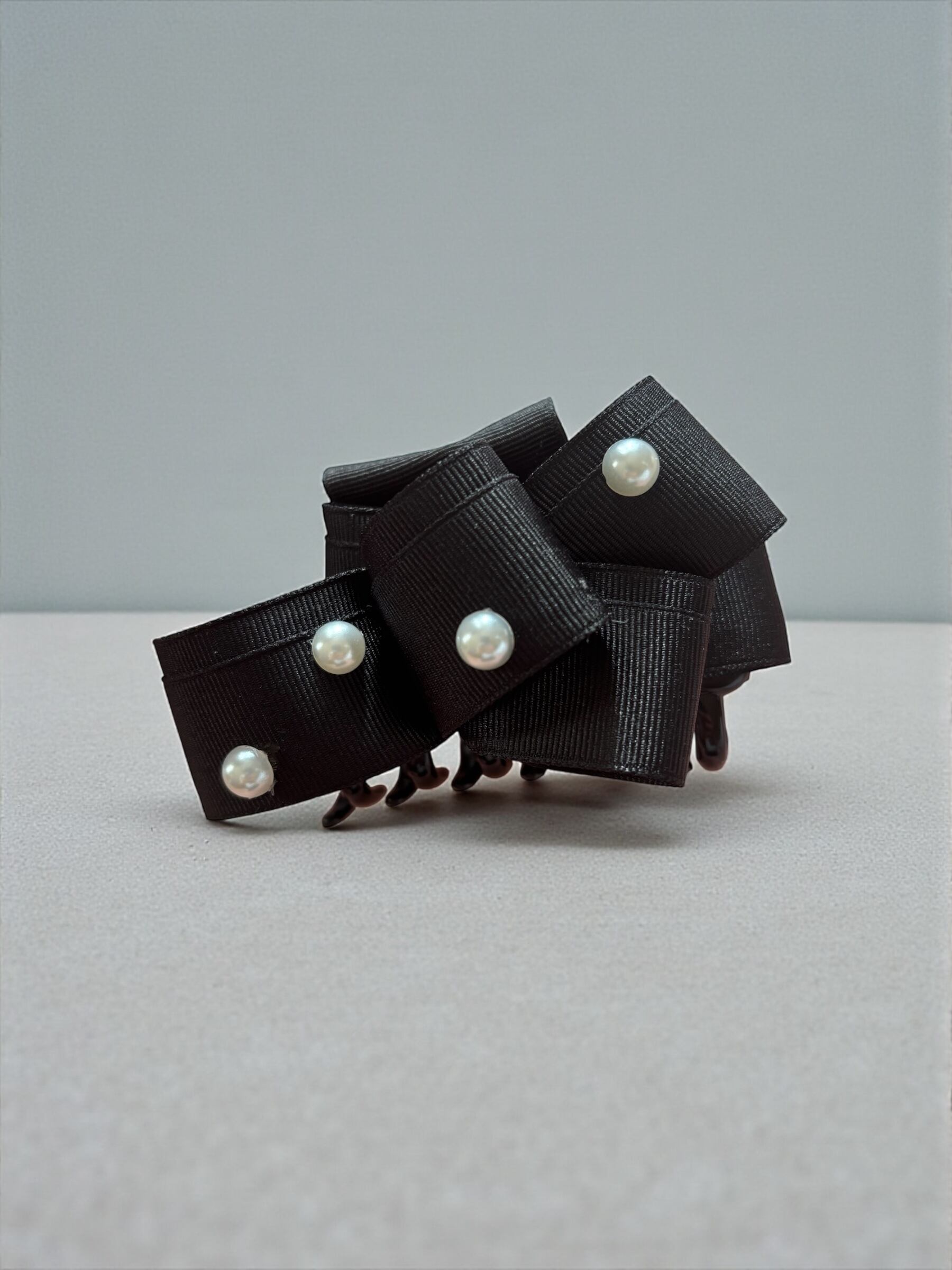■ トレリボン バンスクリップ ブラック×パール|シンプルで華やかなヘアアクセサリー