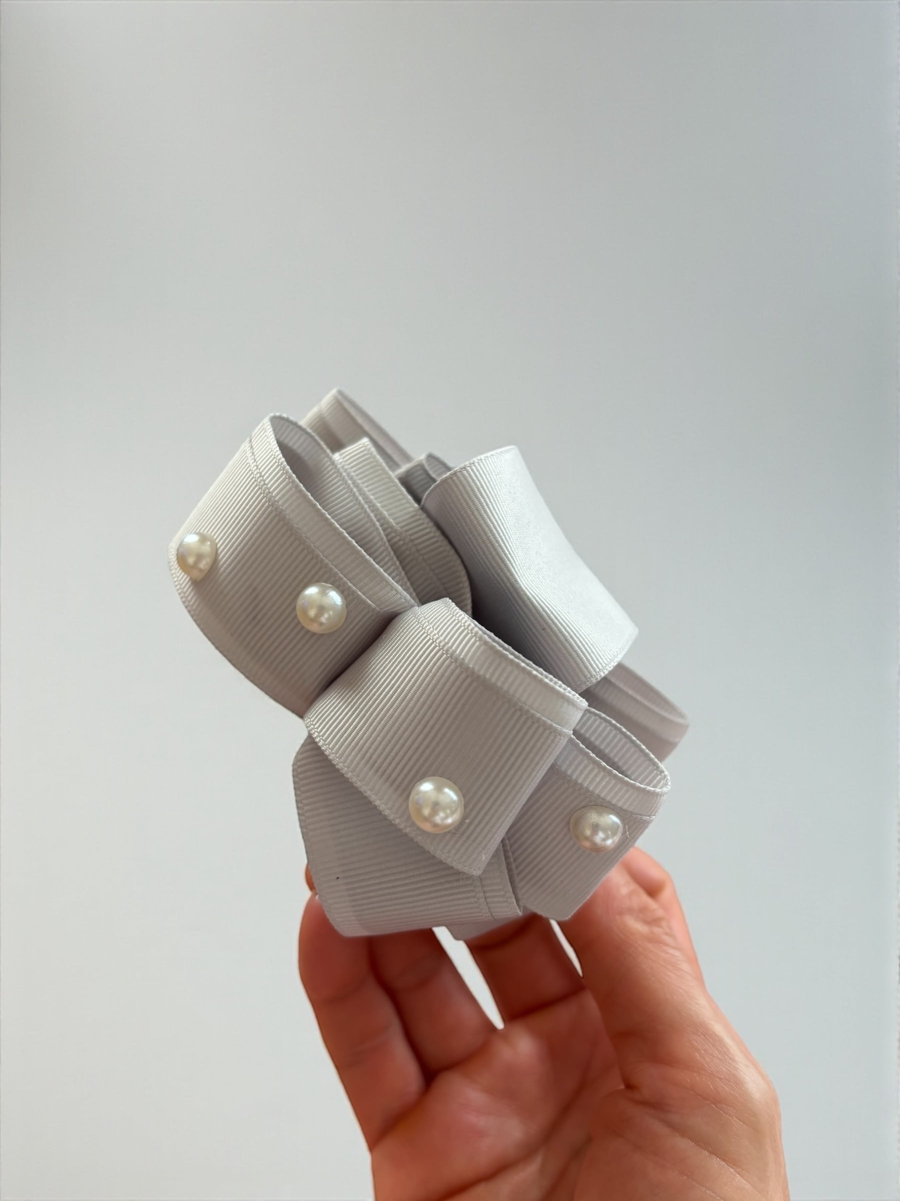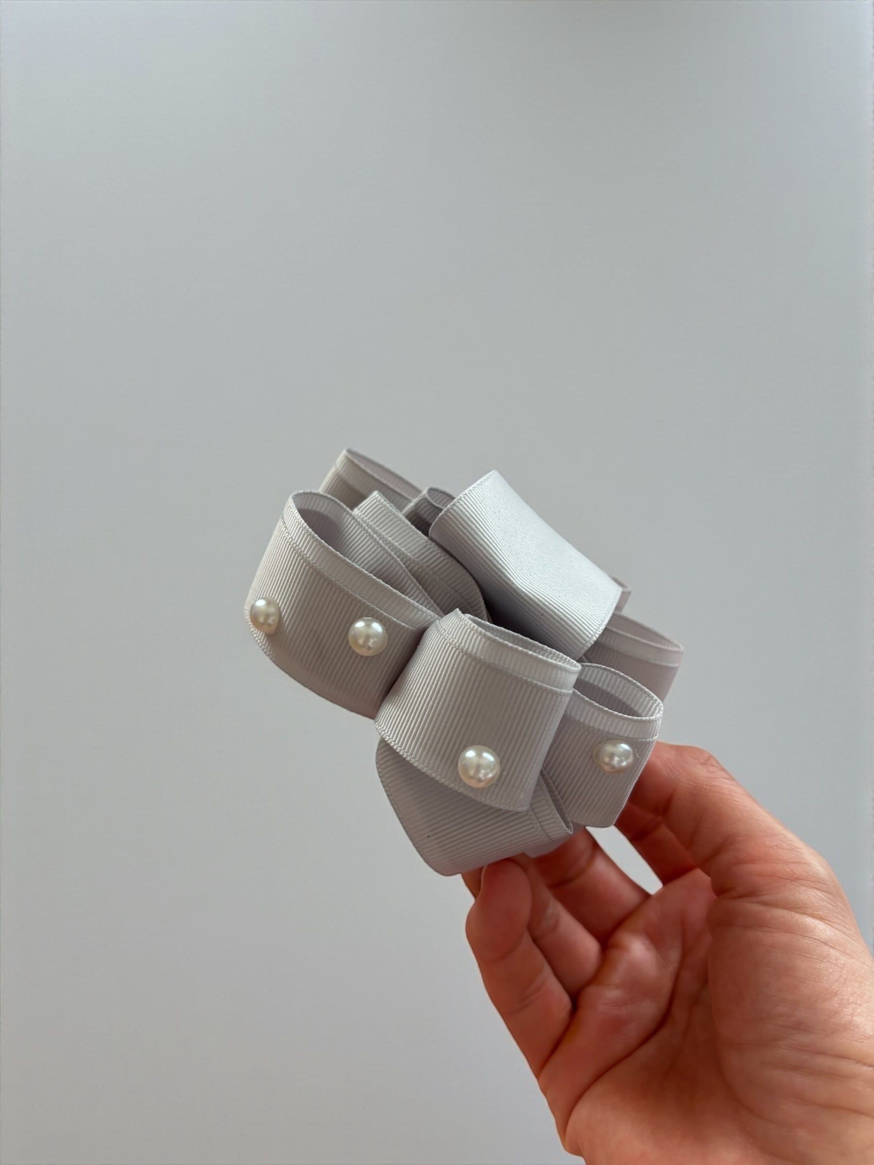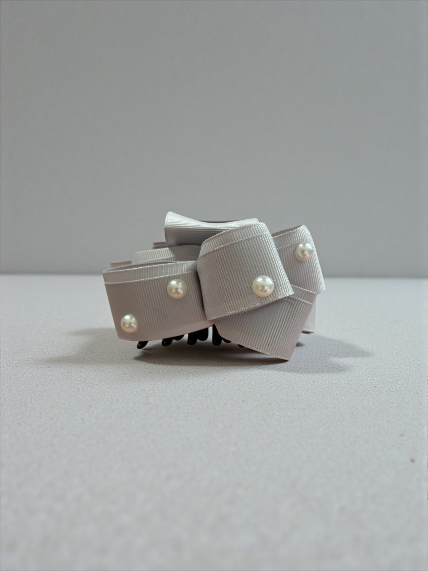 トレリボン バンスクリップ ライトグレー×パール シンプルで華やかなヘアアクセサリー
