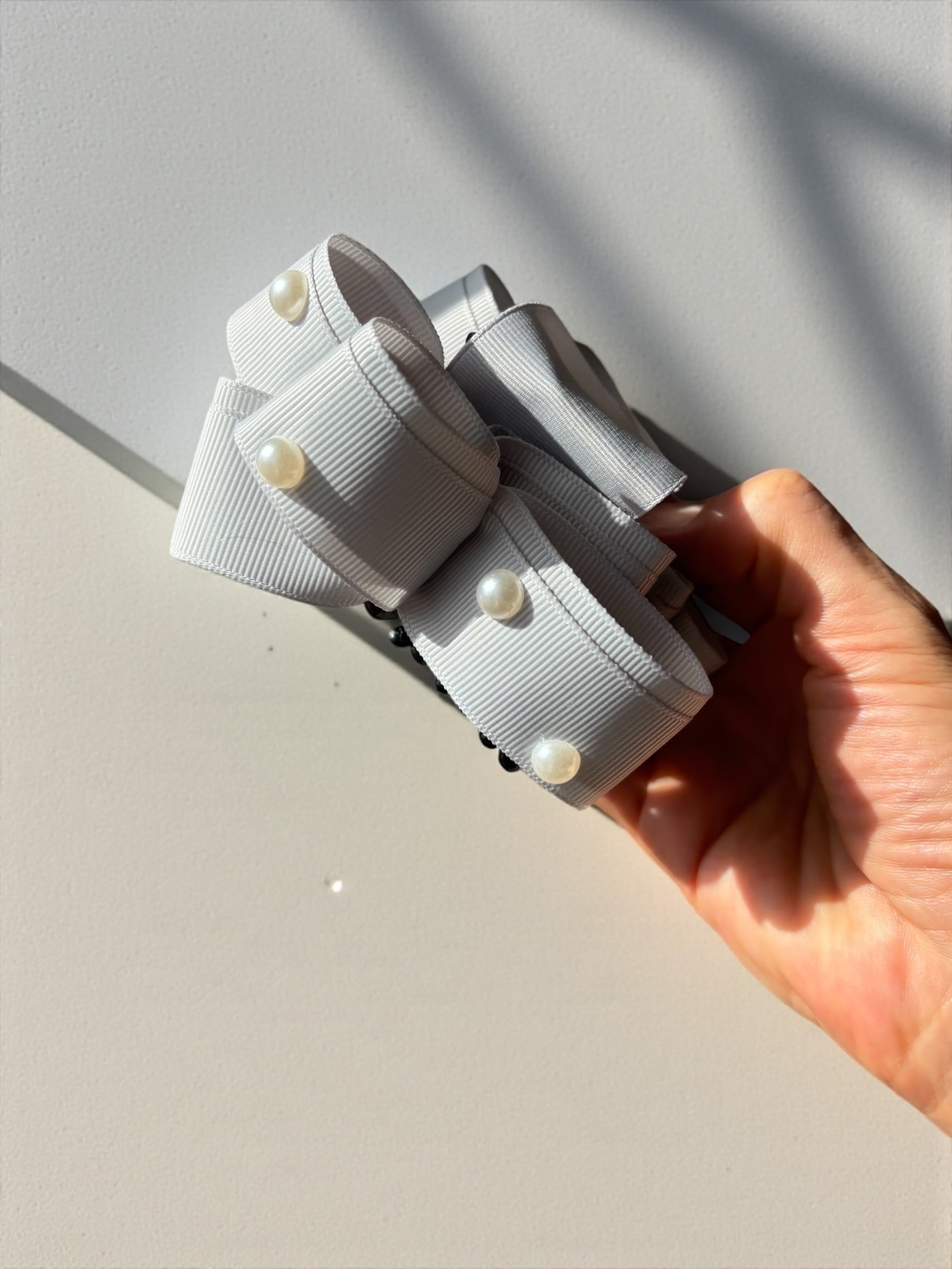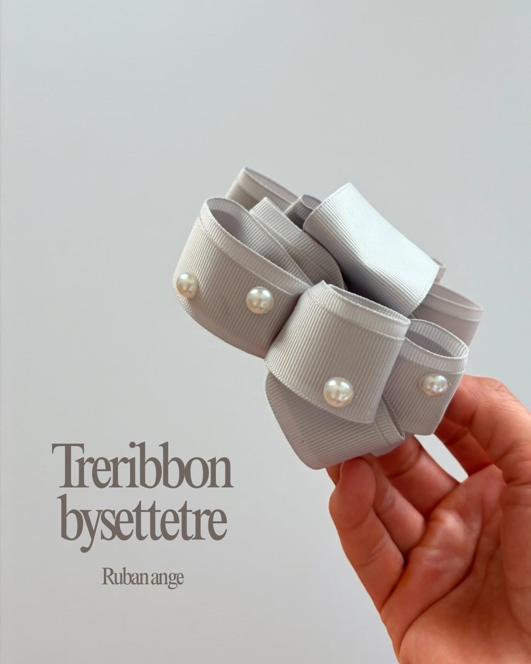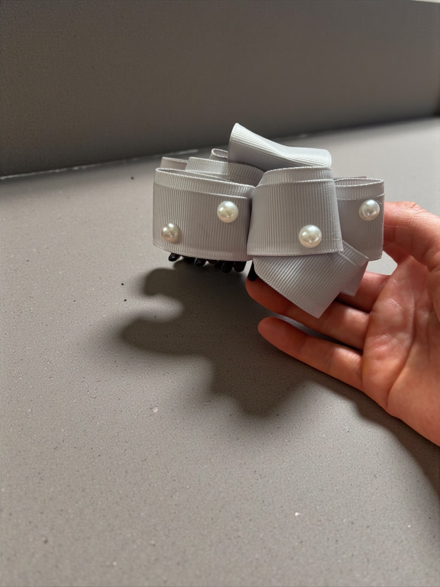 トレリボン バンスクリップ ライトグレー×パール シンプルで華やかなヘアアクセサリー