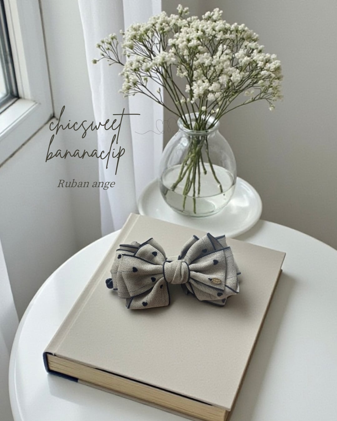 chicsweet バナナクリップ ベージュ ファブリックリボン×ブラック