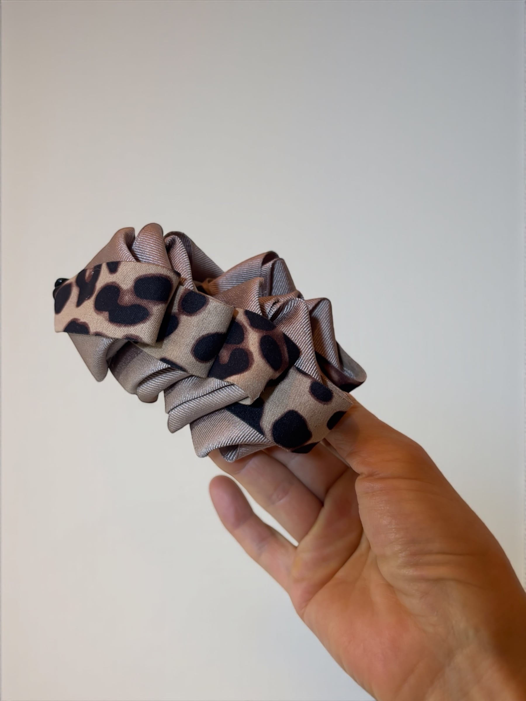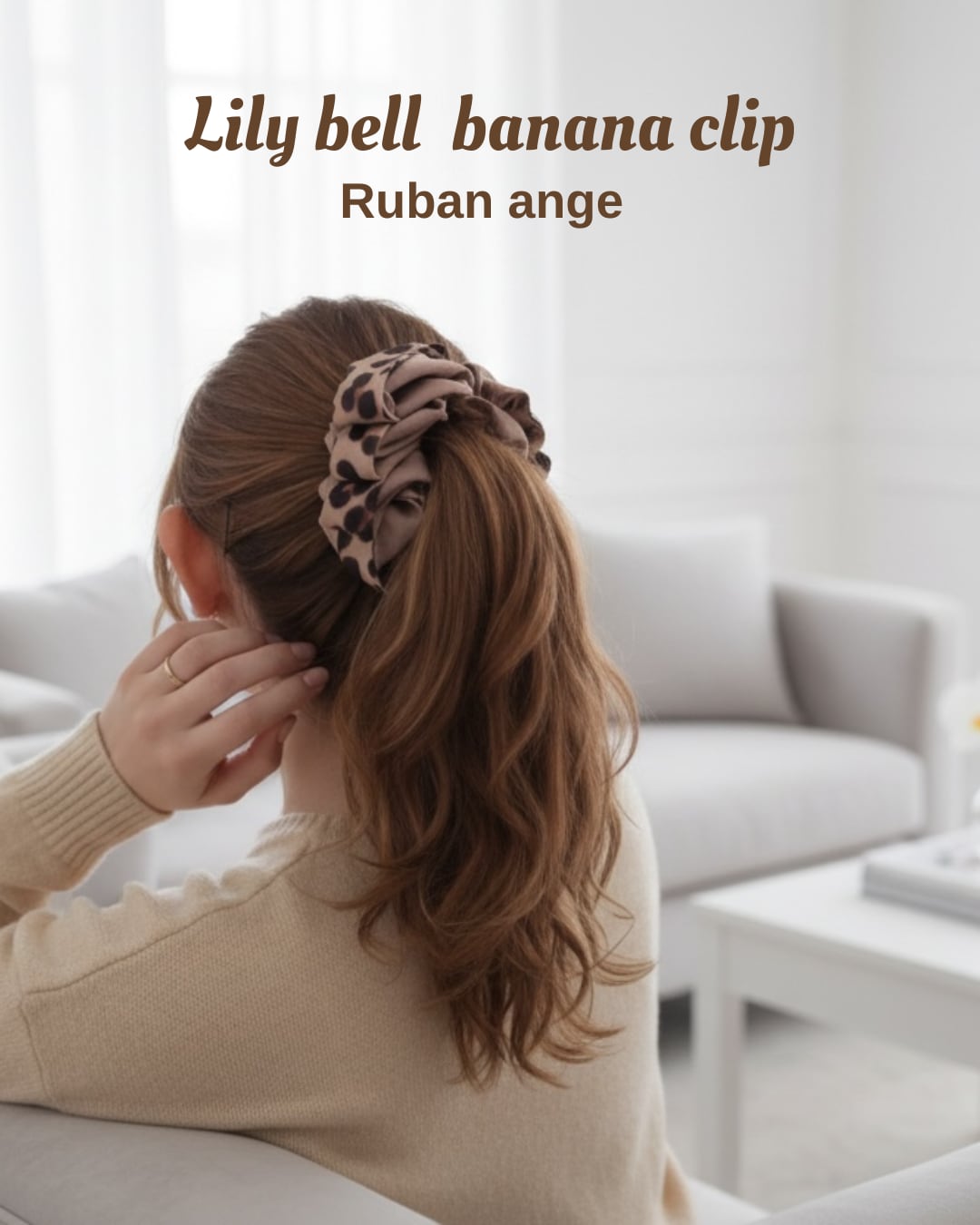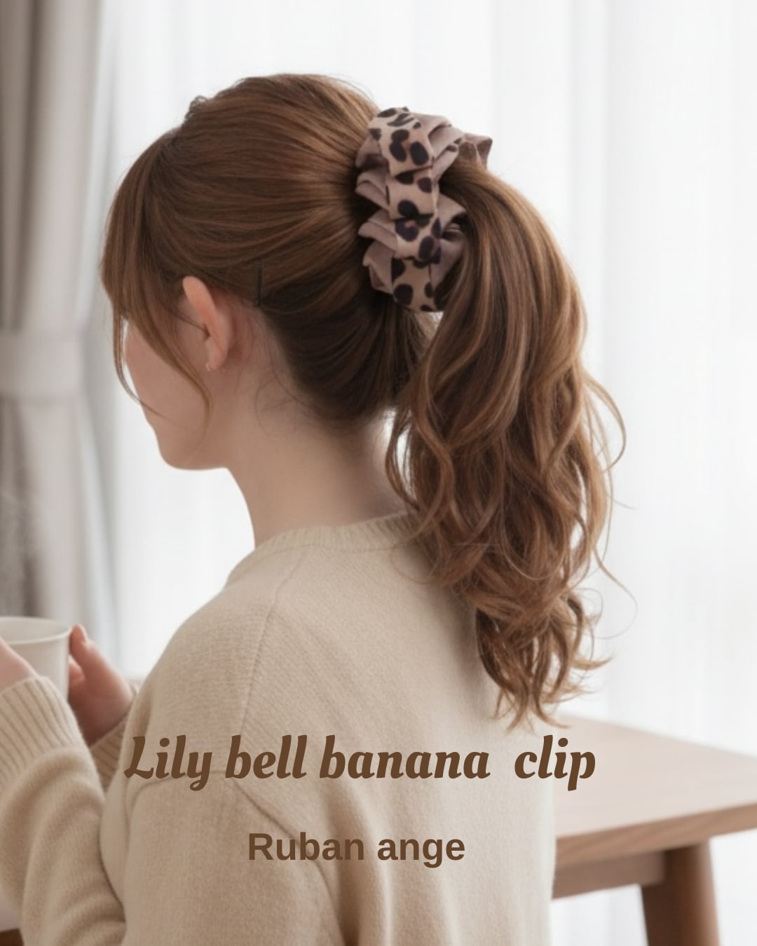 Lily bellバナナクリップ ベージュ×上品レオパードのふんわりバナナクリップ