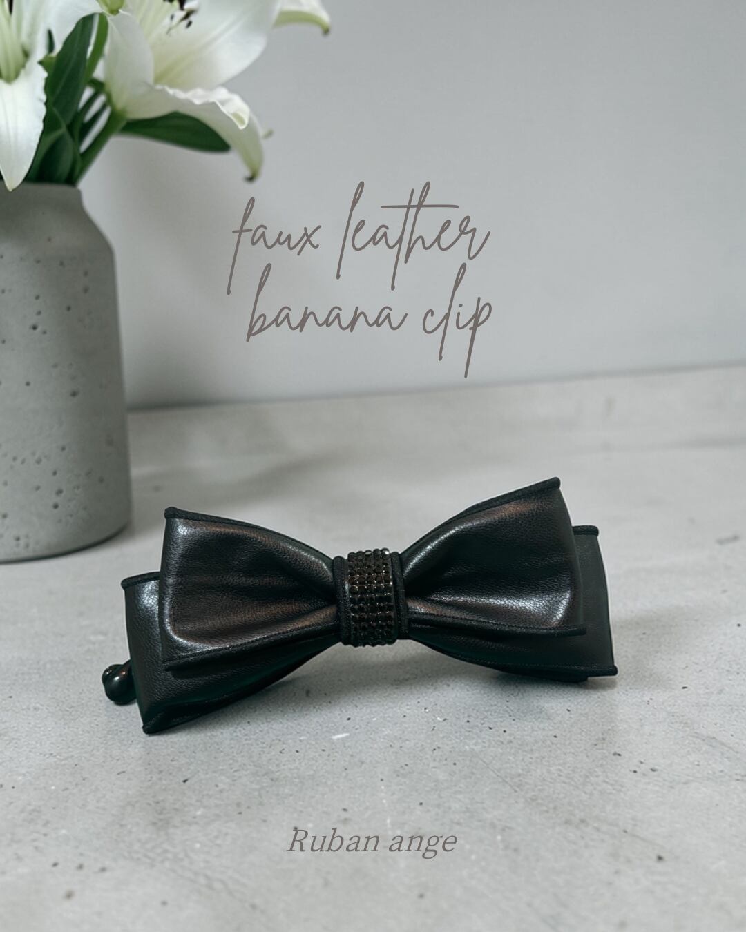 落ち着いた艶感が魅力のフェイクレザーリボンバナナクリップ。