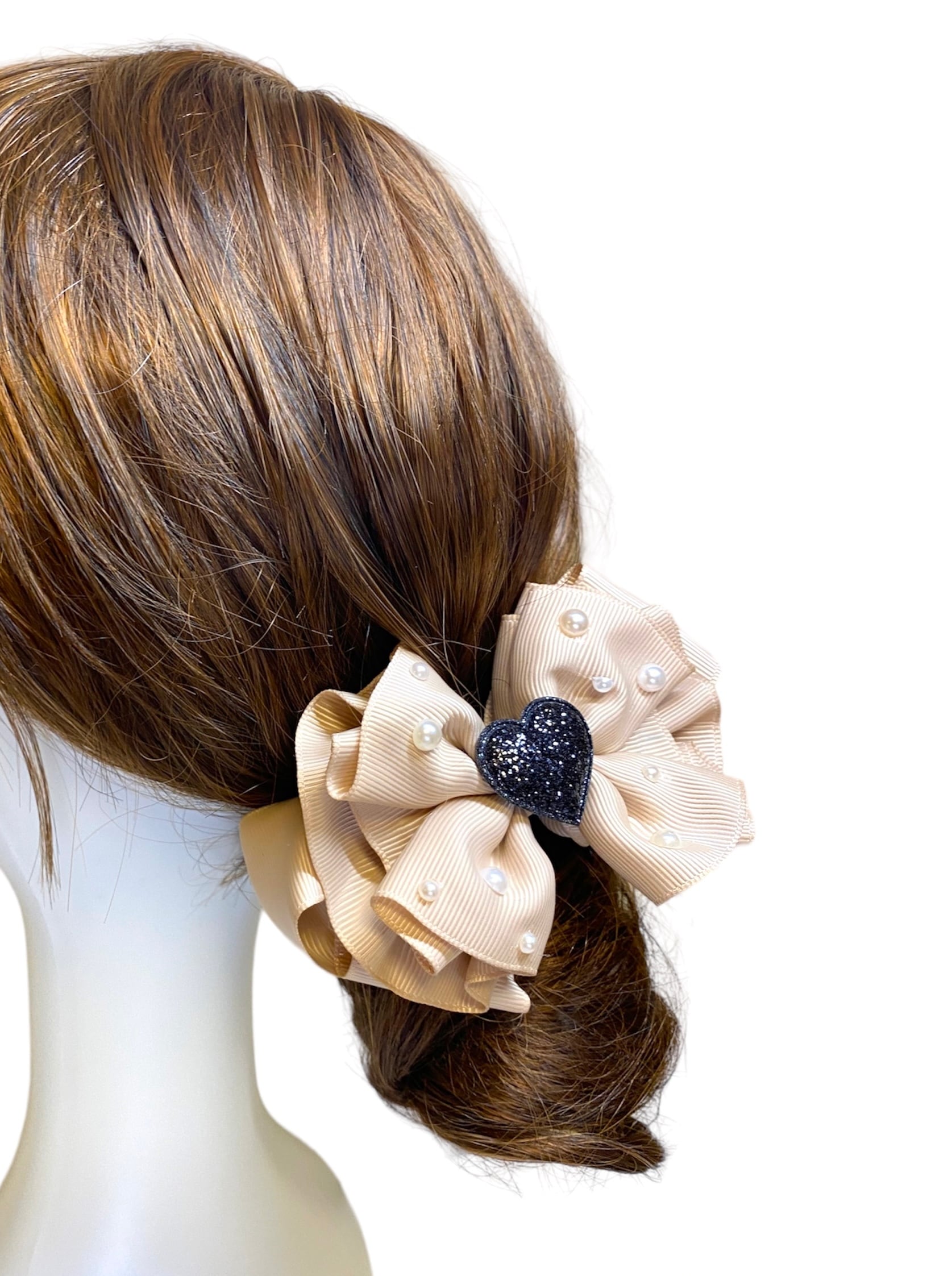 ボリュームが可愛い♡♡ パール付きリボン heart シュシュ