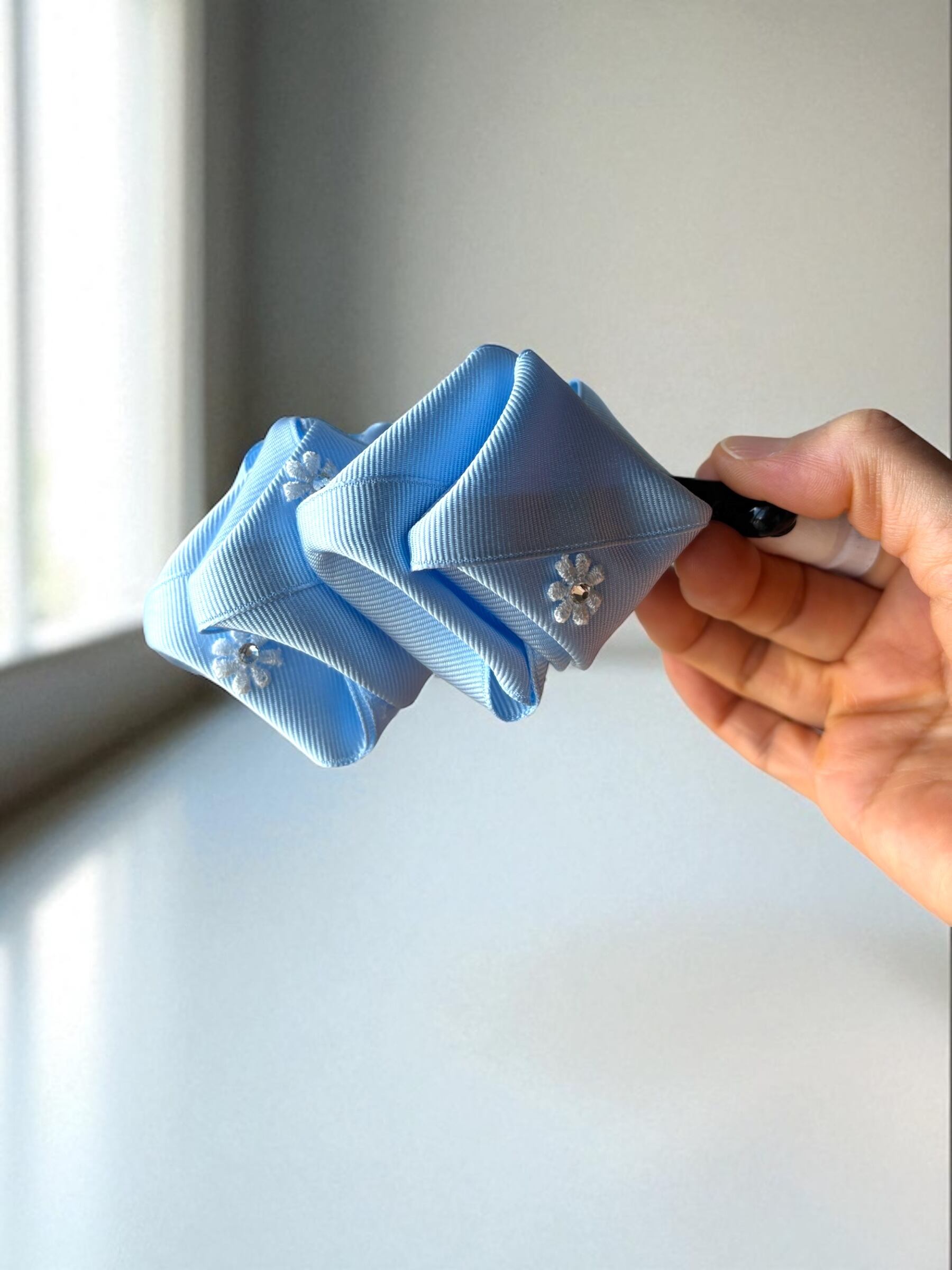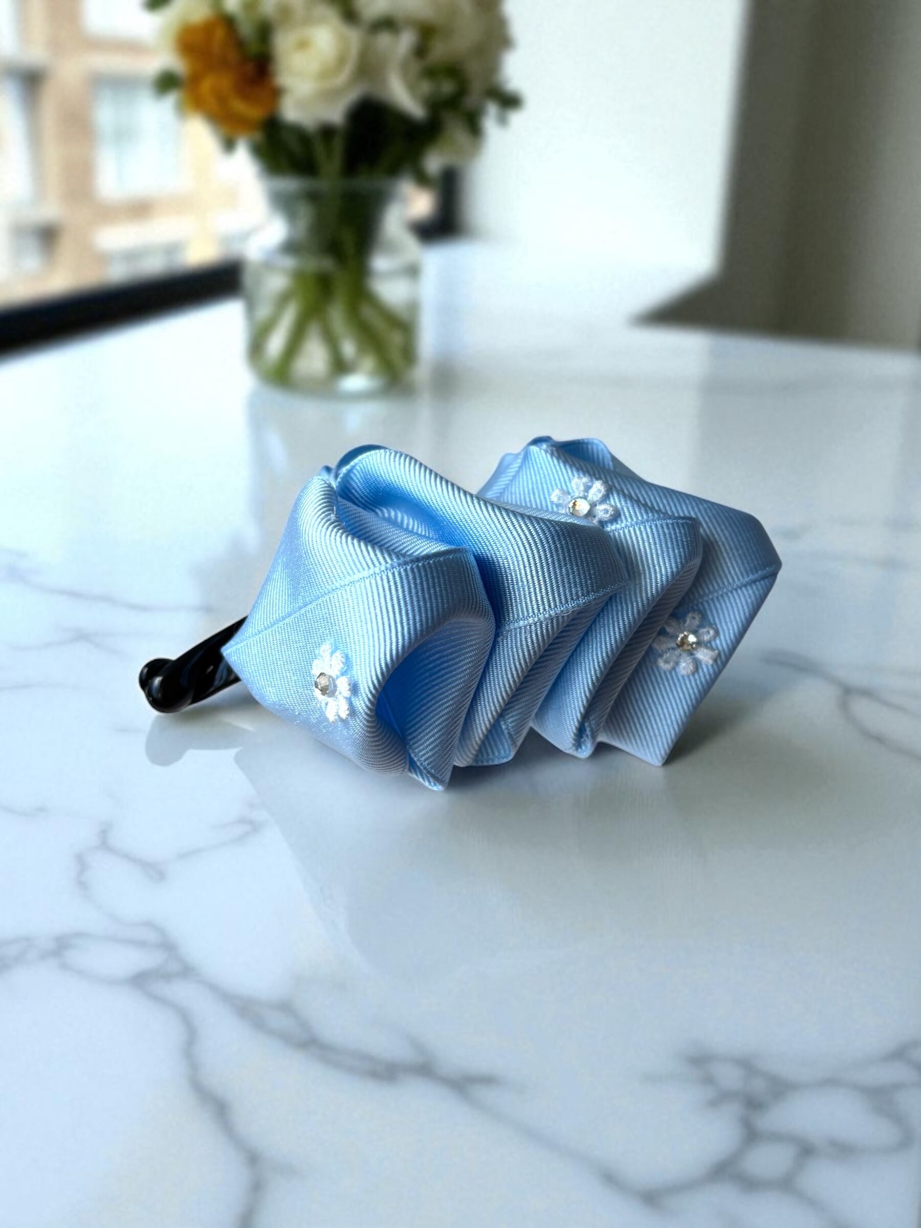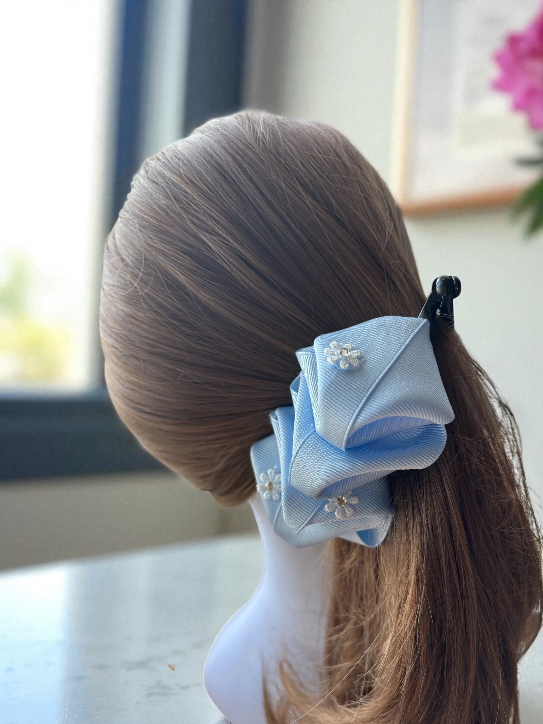 Lily bell バナナクリップ ライトブルー × お花(ラインストーン付き)