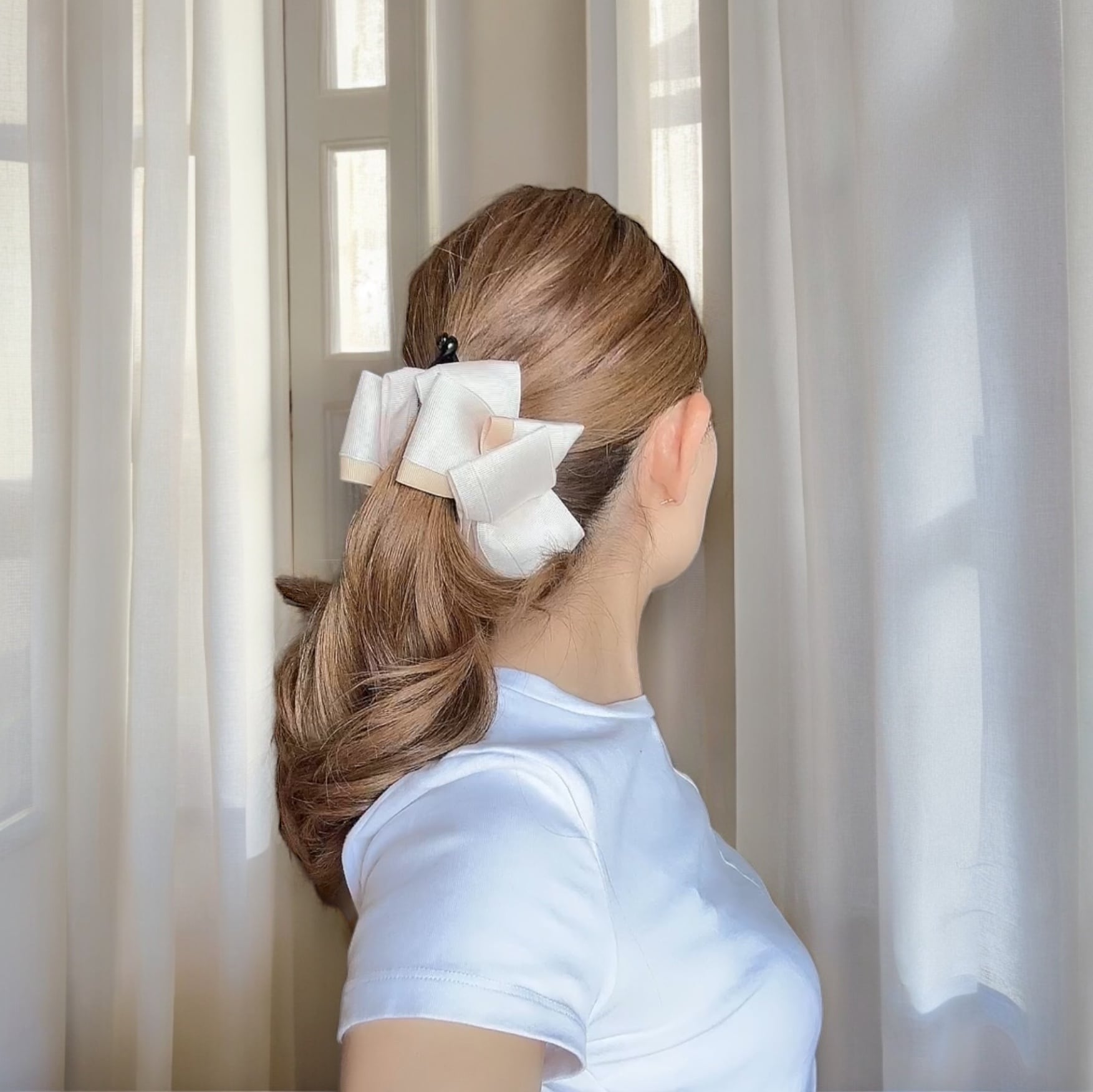 トレリボンバナナクリップは、ヘアスタイルを華やかにアレンジしたい日や、カジュアルなデイリールックにさりげないアクセントをプラスしたい時にぴったり。