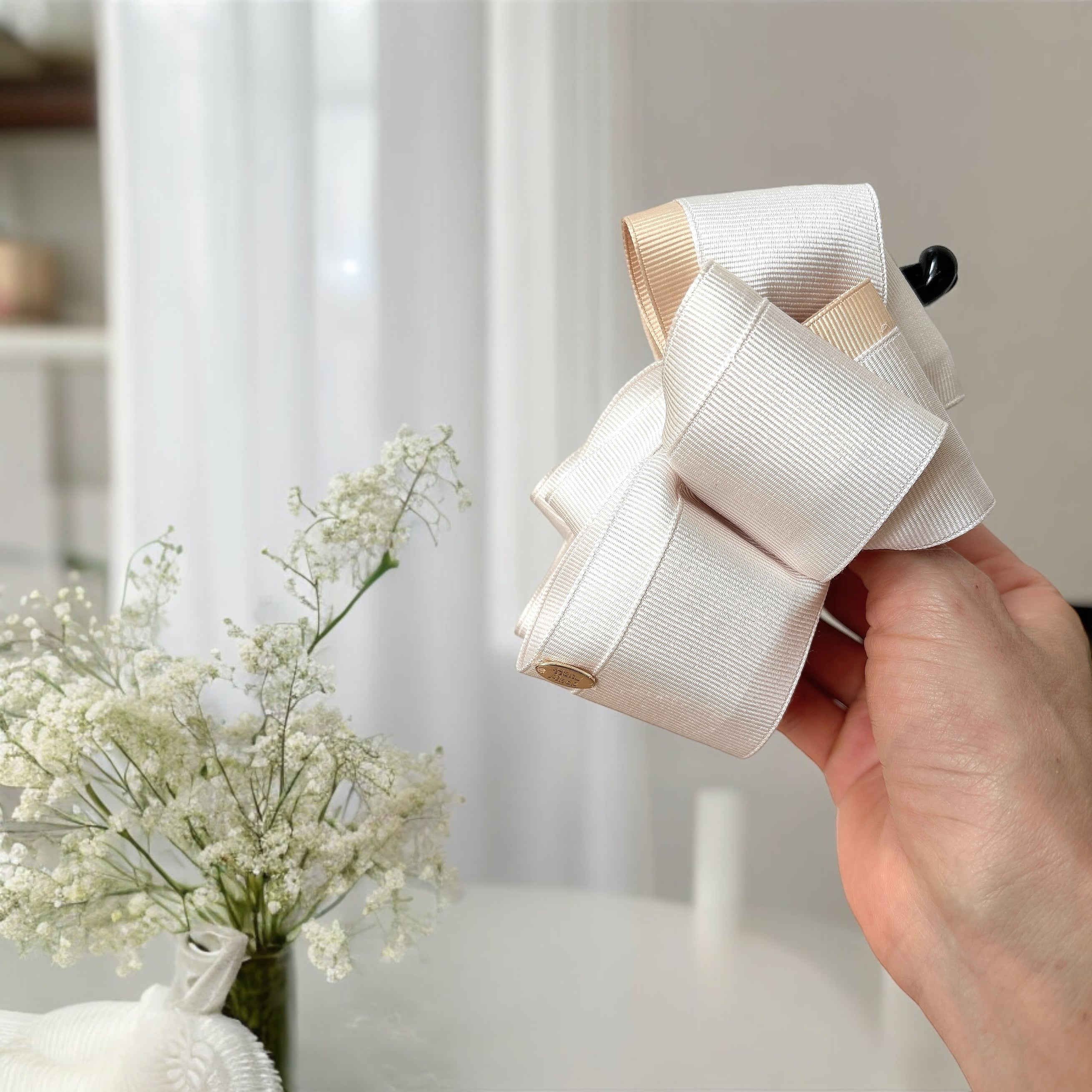 シンプルなデザイン トレリボン バナナクリップ アンティークホワイト × ベージュ