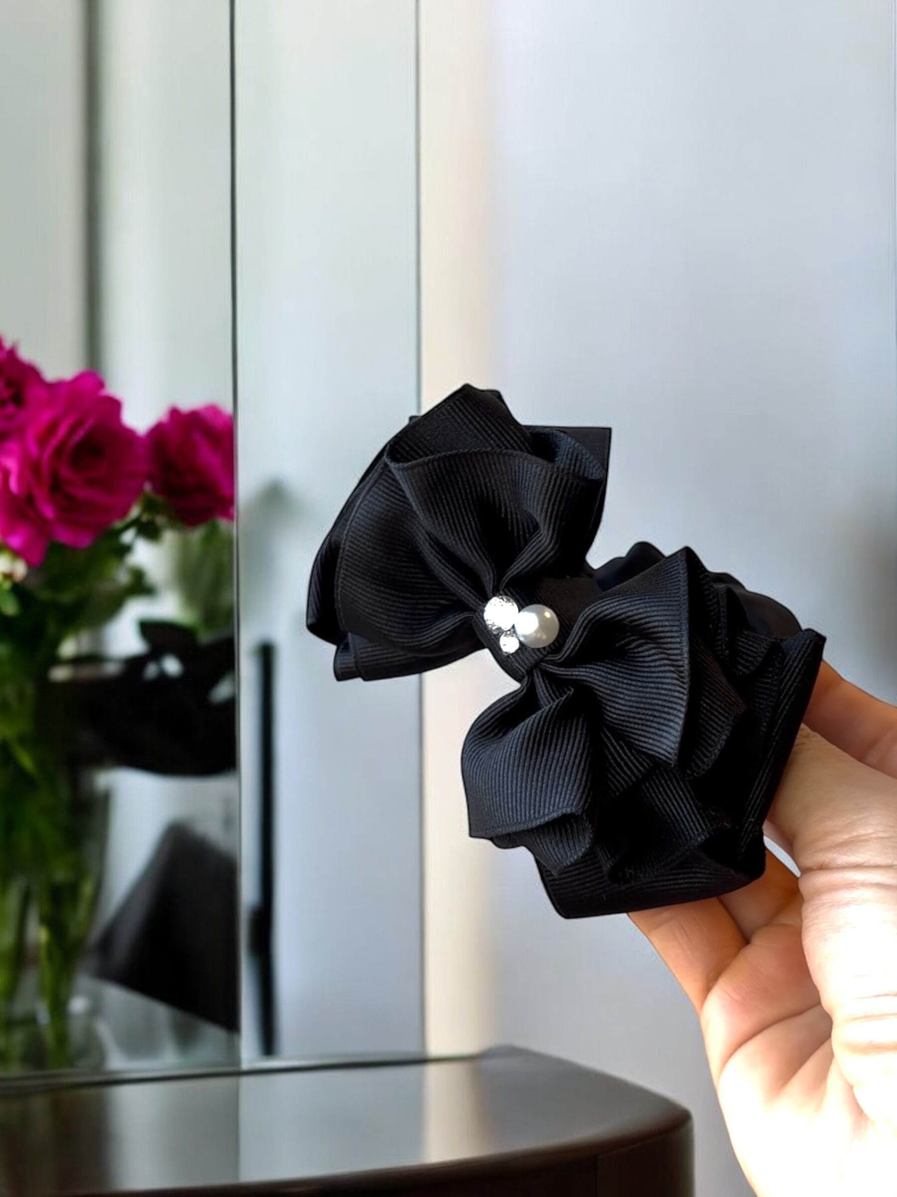 ふわふわボリューム シュシュ シエナ ブラック ビジュー付き