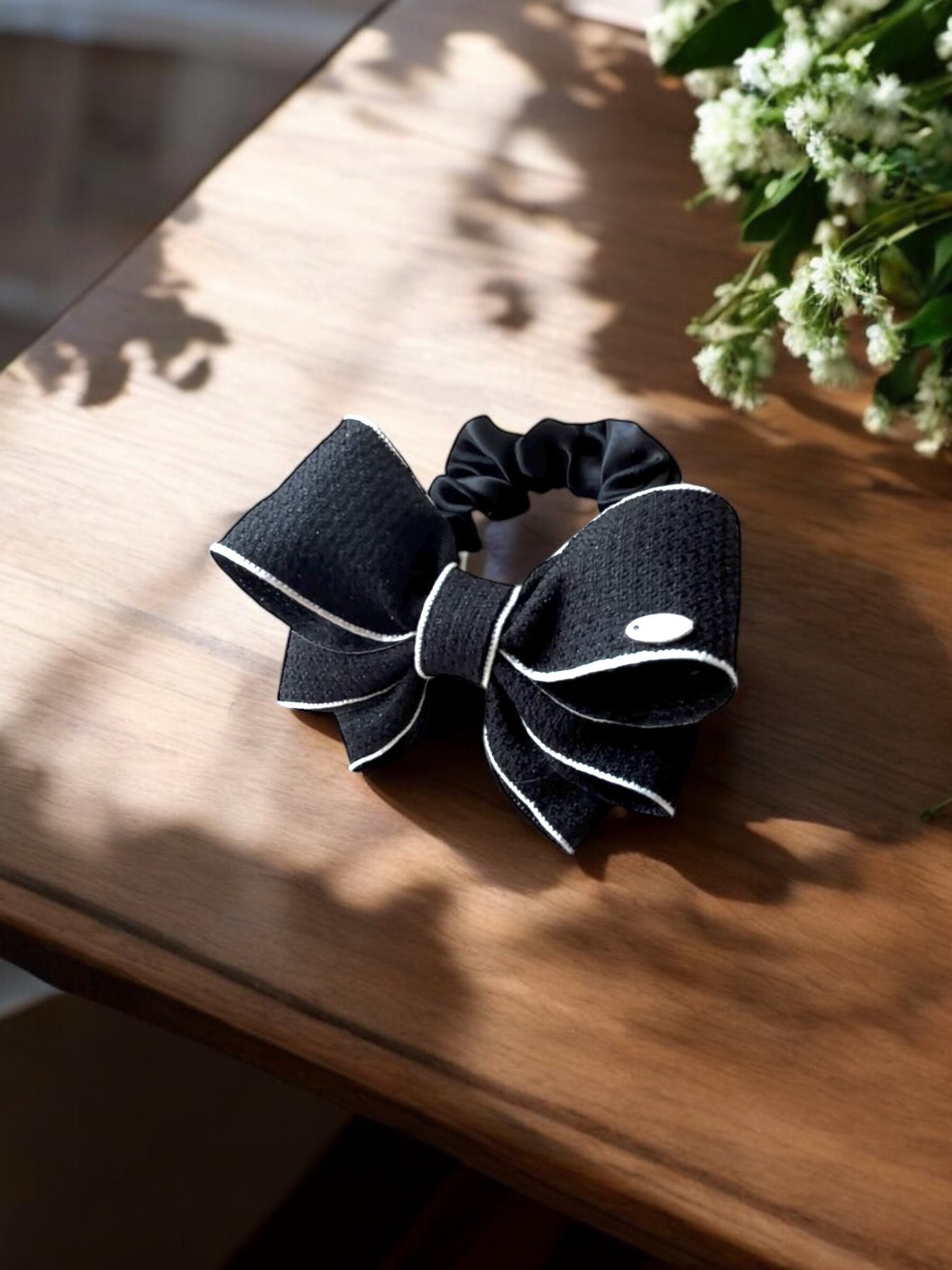 シンプル リボン ぷっくり ワイヤー入り シュシュ ブラック