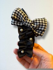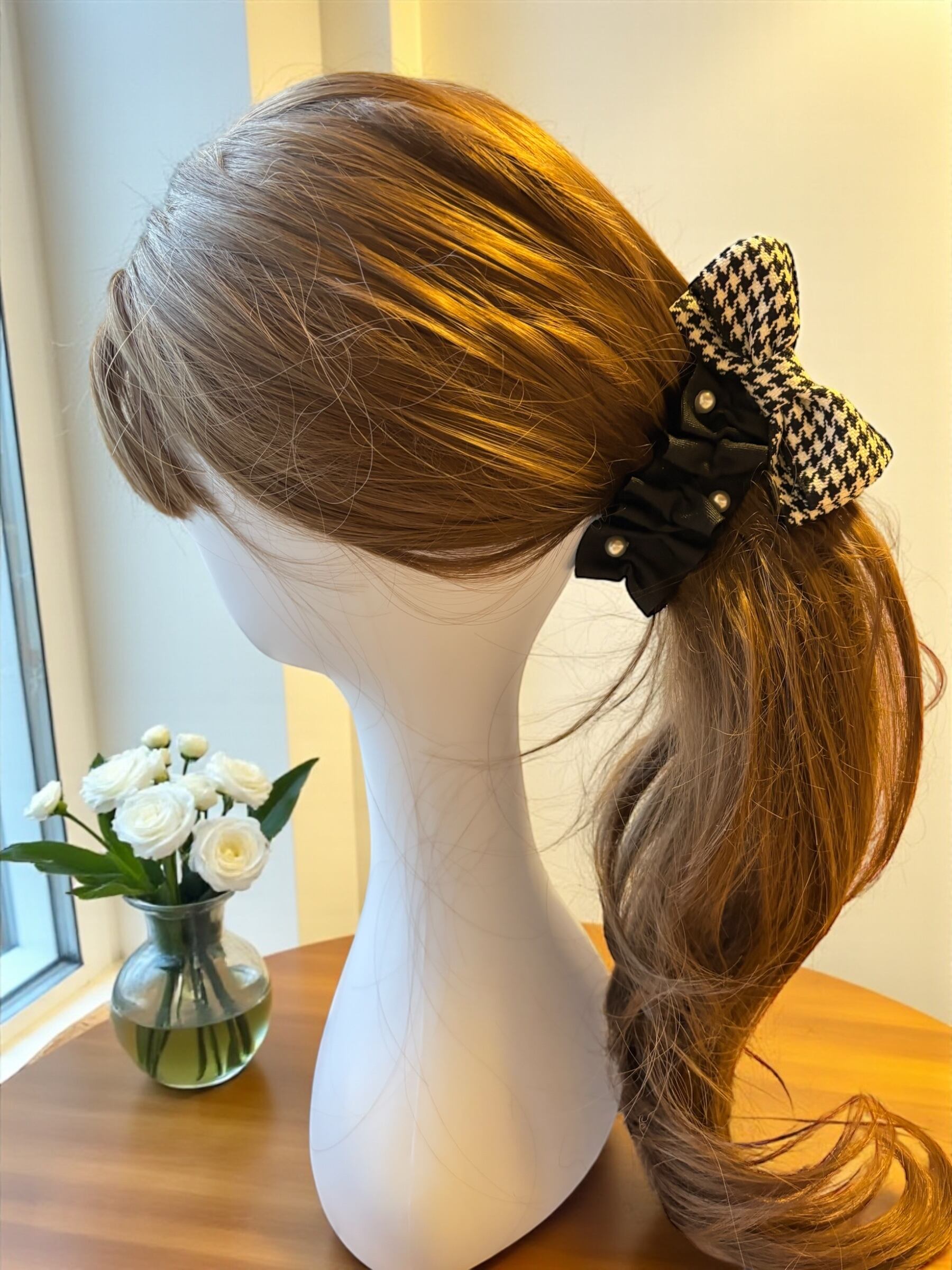 シュリンク パール バナナクリップ ブラック × 千鳥格子柄