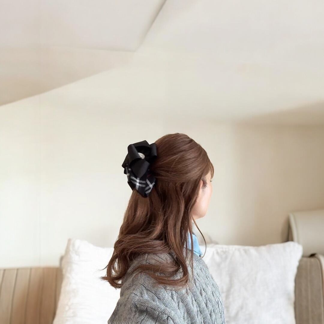 このバンスクリップは、ゴムで結んだ髪の上から挟むだけで、手軽に素敵なヘアアレンジが楽しめます!忙しい日常の中でも、さっと気軽に使える便利アイテムです。